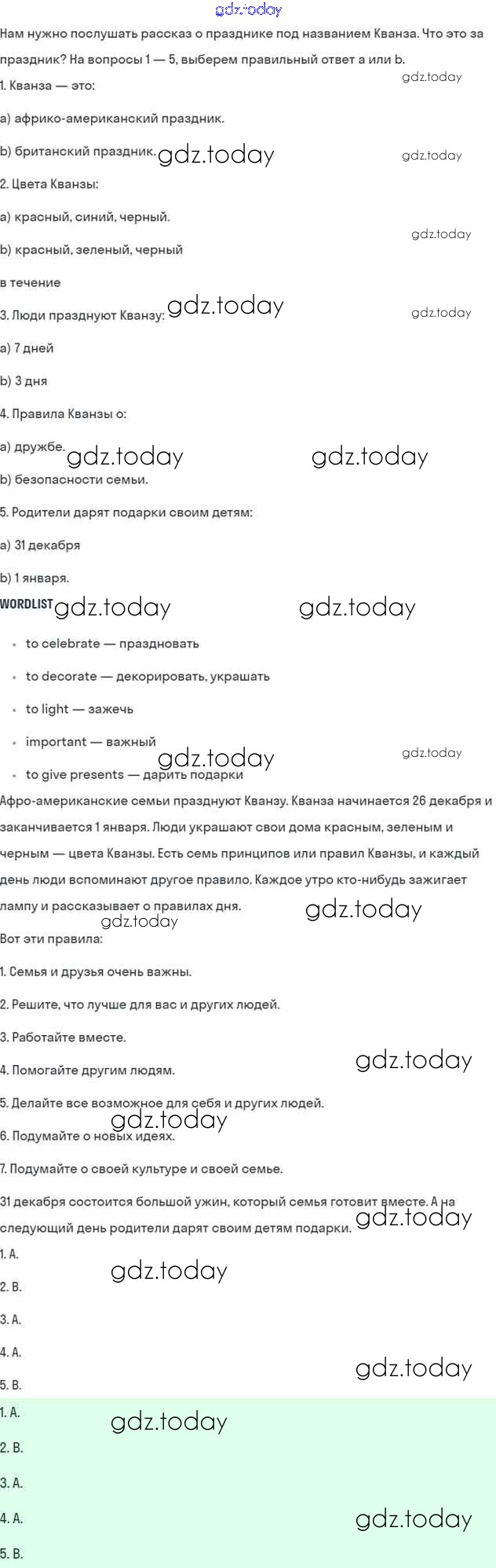 Ответы к Lesson 7-8. Test yourself Решение к Unit 5. My favourite celebrations 1 Учебнику по Английскому языку для 5 класса Кузовлев, Лапа Просвещение УМК 2015