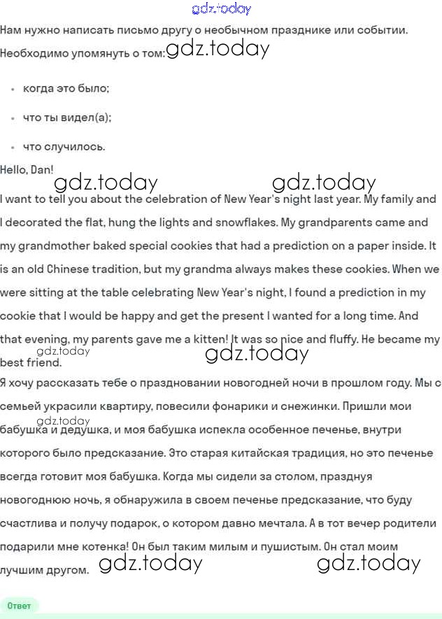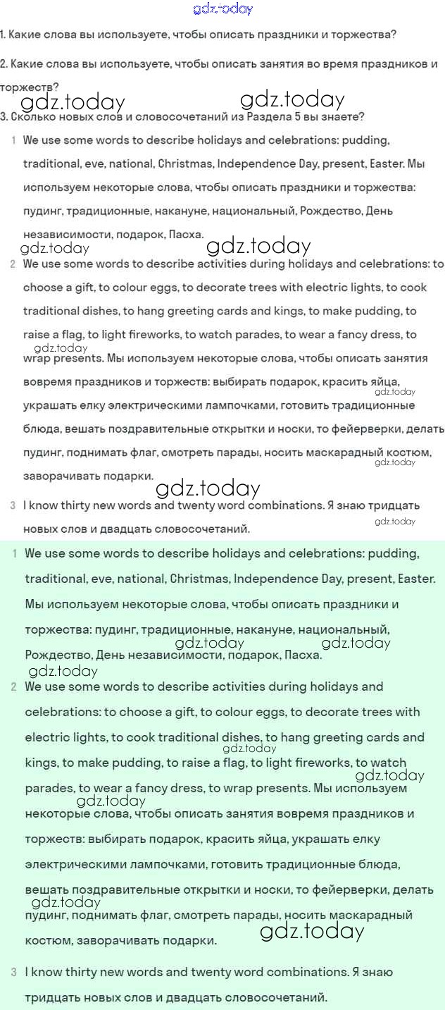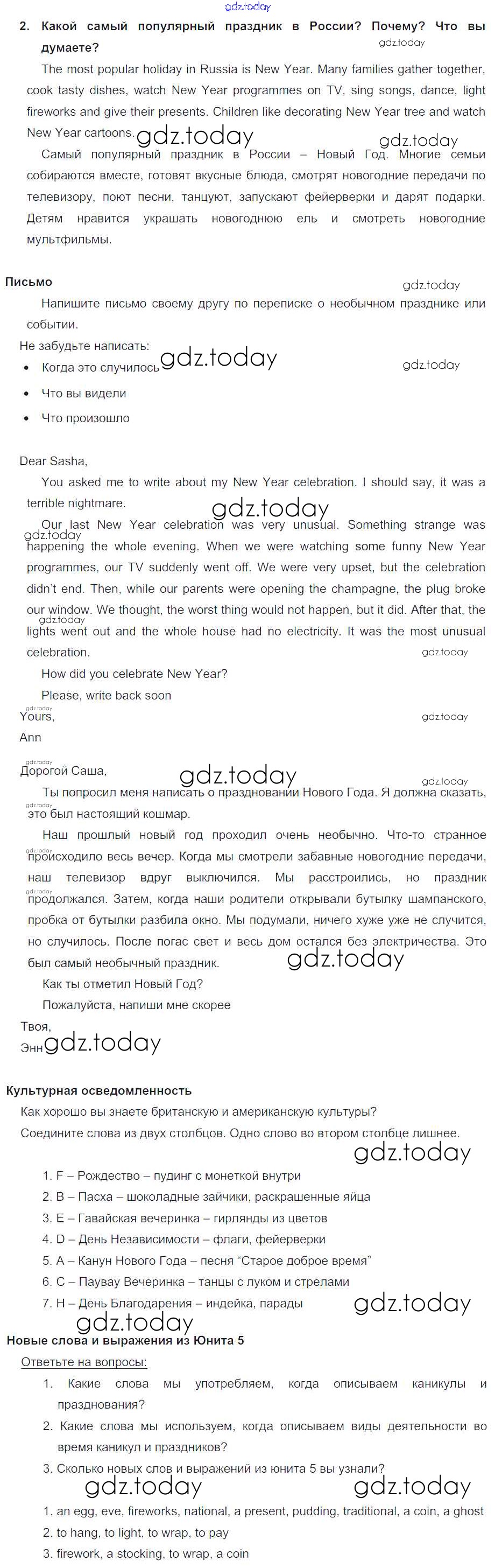 Решение к Unit 5. My favourite celebrations
