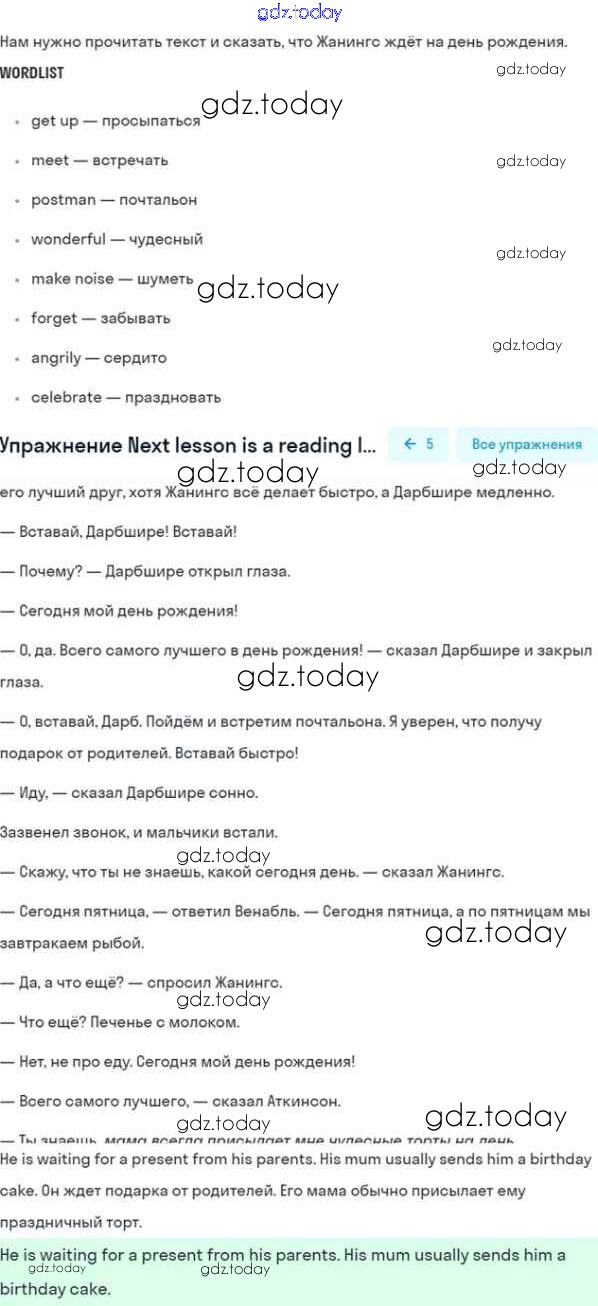 Ответы к Reading lesson Решение к Unit 4. Every day and at weekends 1 Учебнику по Английскому языку для 5 класса Кузовлев, Лапа Просвещение УМК 2015