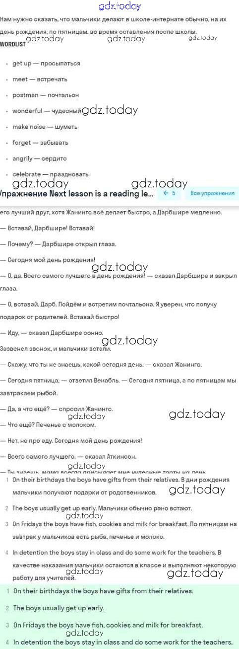 Ответы к Reading lesson Решение к Unit 4. Every day and at weekends 6 Учебнику по Английскому языку для 5 класса Кузовлев, Лапа Просвещение УМК 2015