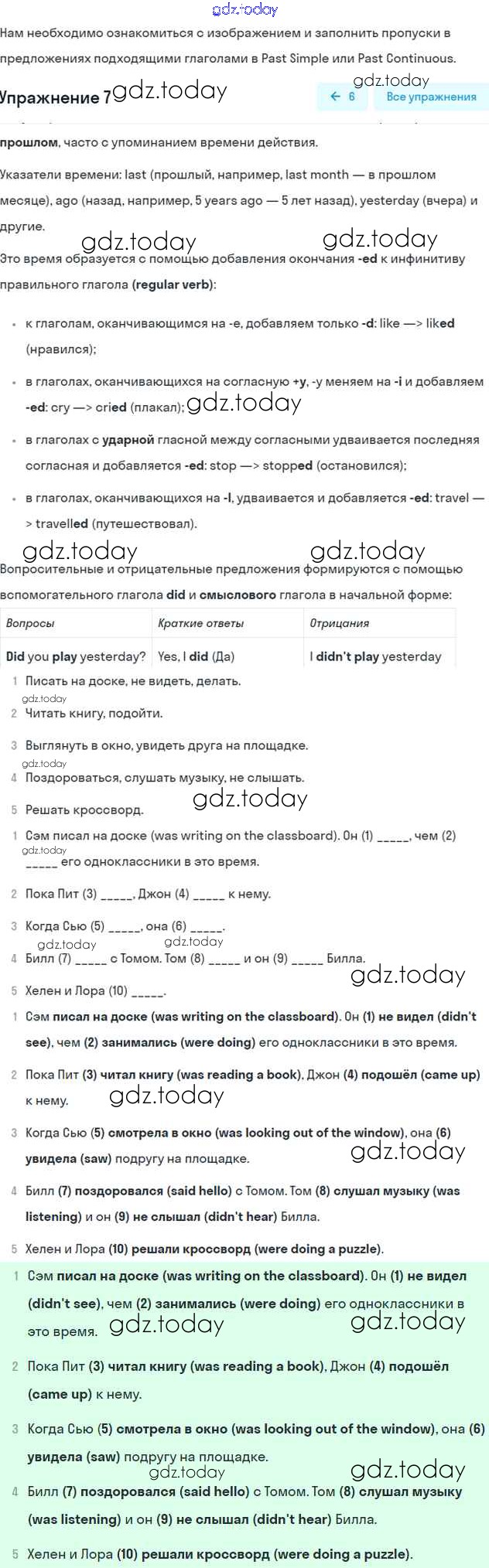 На страницах сайта gdz.today вы найдете учебный и вспомогательный материал, направленный на улучшения знаний школьной программы. ГДЗ - онлайн мир знаний Lesson 2. What were you doing the whole day yesterday? Решение к Unit 6. We’ve had a nice trip to England 7 Учебнику по Английскому языку для 5 класса Кузовлев, Лапа Просвещение УМК 2015
