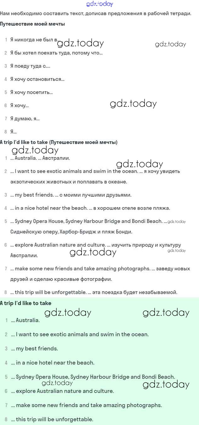 На страницах сайта gdz.today вы найдете учебный и вспомогательный материал, направленный на улучшения знаний школьной программы. ГДЗ - онлайн мир знаний Lesson 5. Do you like taking trips? Решение к Unit 8. My best impressions 5 Учебнику по Английскому языку для 5 класса Кузовлев, Лапа Просвещение УМК 2015