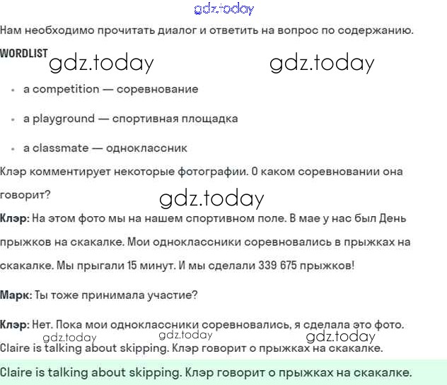 На страницах сайта gdz.today вы найдете учебный и вспомогательный материал, направленный на улучшения знаний школьной программы. ГДЗ - онлайн мир знаний Lesson 2. What were you doing the whole day yesterday? Решение к Unit 6. We’ve had a nice trip to England 1 Учебнику по Английскому языку для 5 класса Кузовлев, Лапа Просвещение УМК 2015