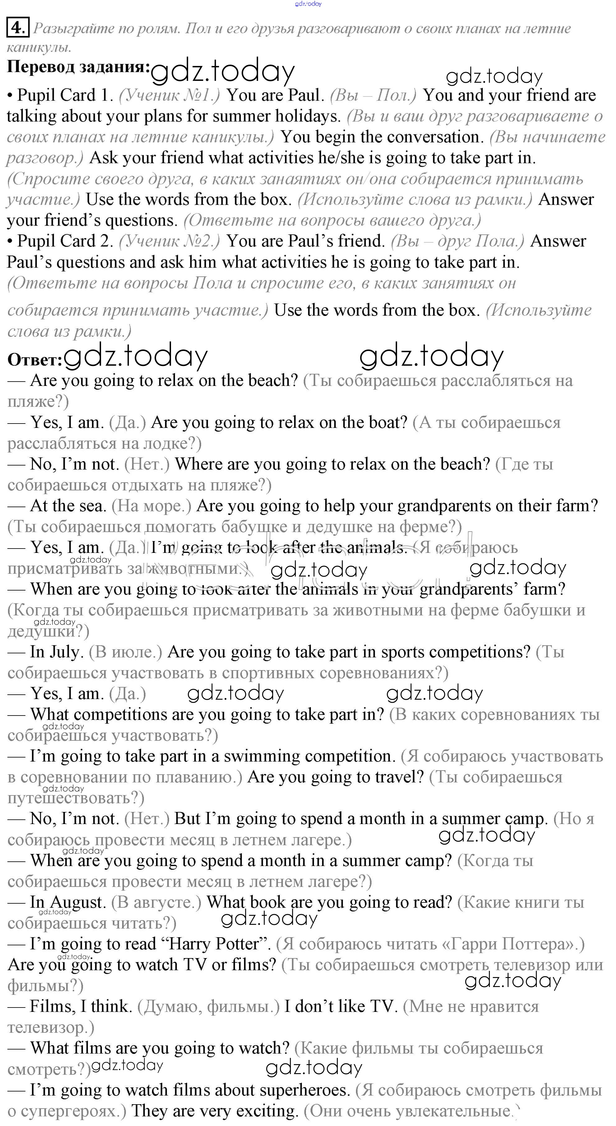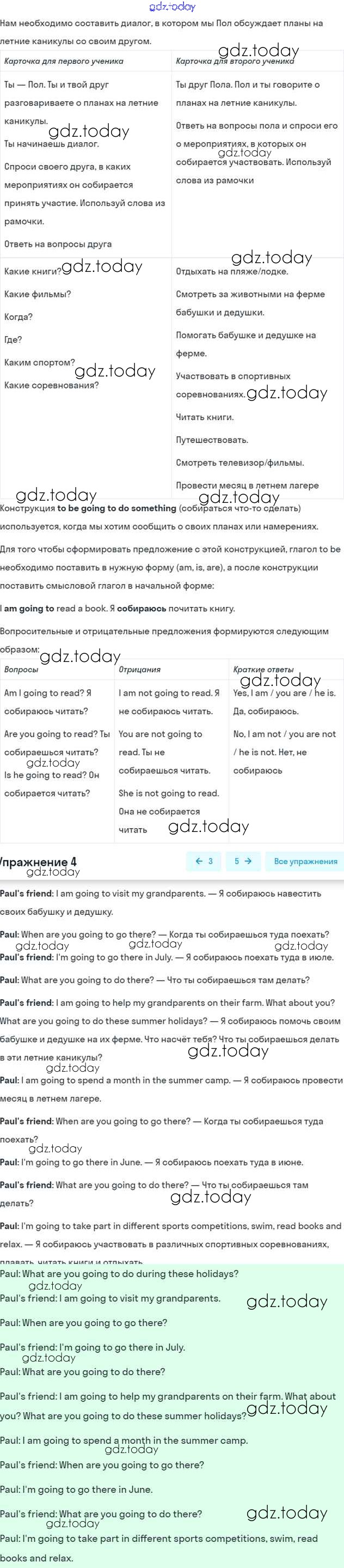 На страницах сайта gdz.today вы найдете учебный и вспомогательный материал, направленный на улучшения знаний школьной программы. ГДЗ - онлайн мир знаний Lesson 2. What are you going to do? Решение к Unit 7. My future holiday 4 Учебнику по Английскому языку для 5 класса Кузовлев, Лапа Просвещение УМК 2015