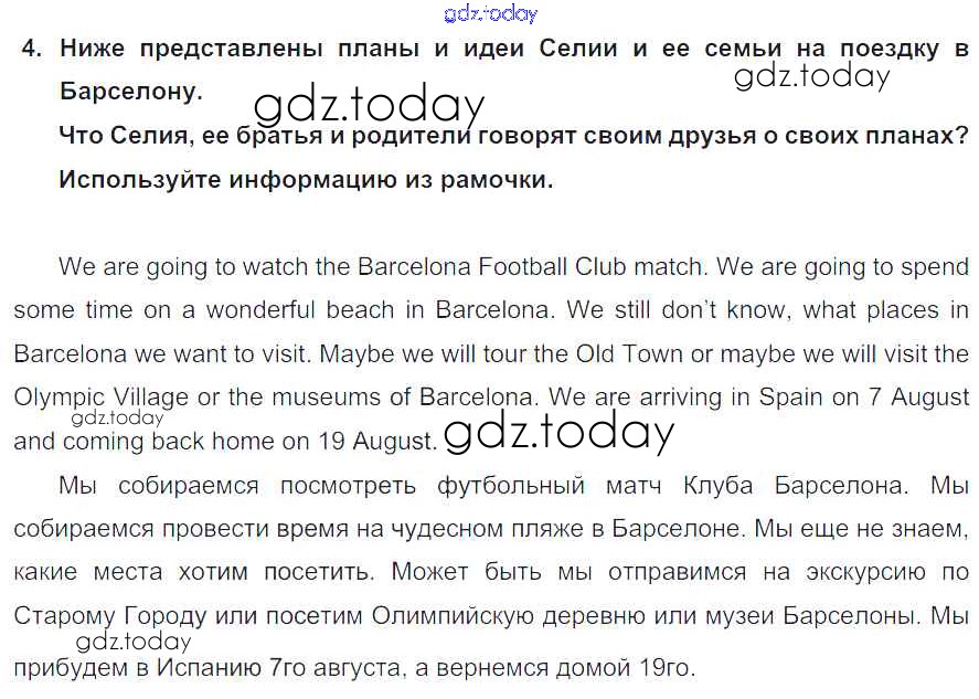 На страницах сайта gdz.today вы найдете учебный и вспомогательный материал, направленный на улучшения знаний школьной программы. ГДЗ - онлайн мир знаний Lesson 4. Have you got any plans? Решение к Unit 7. My future holiday 4 Учебнику по Английскому языку для 5 класса Кузовлев, Лапа Просвещение УМК 2015
