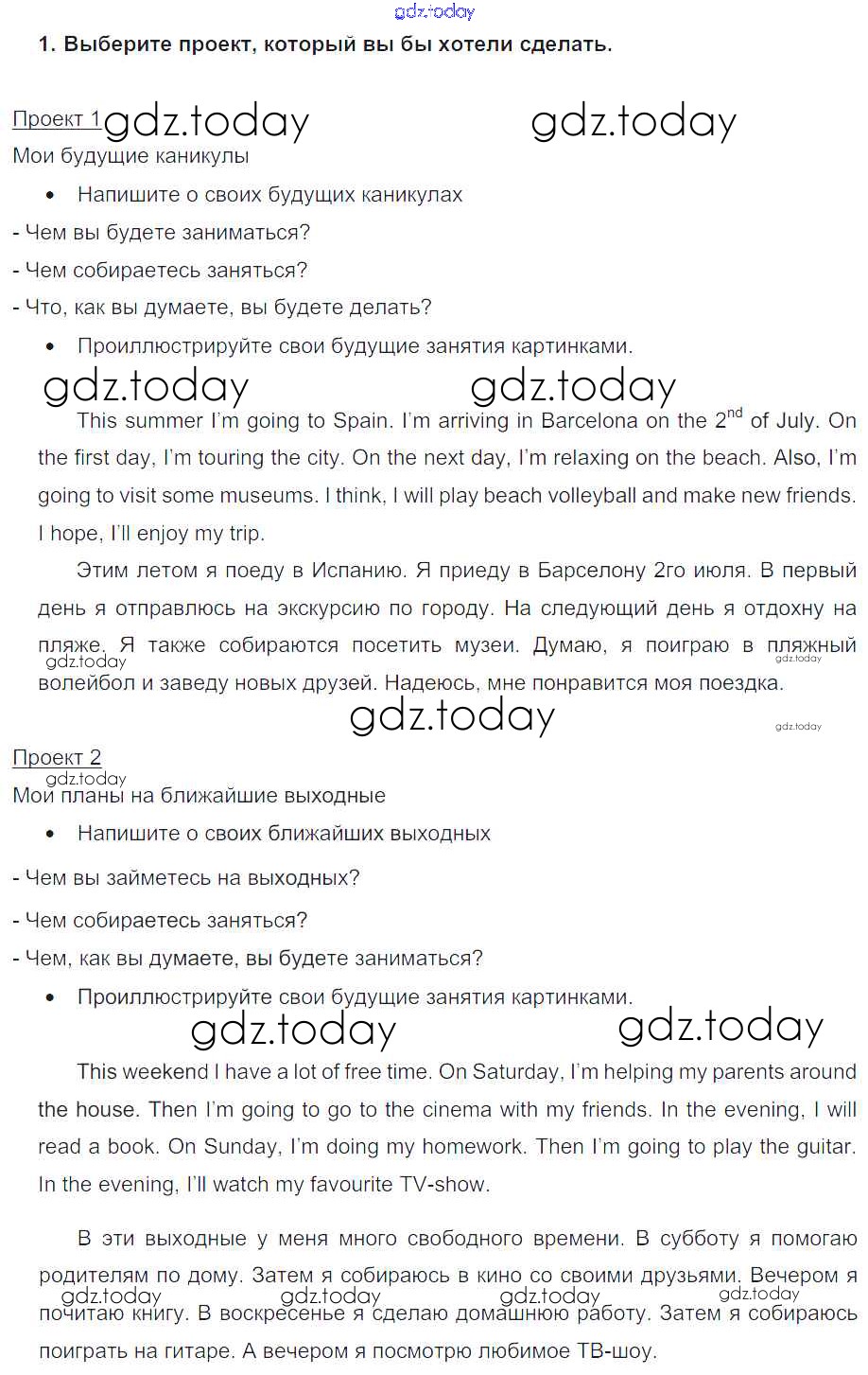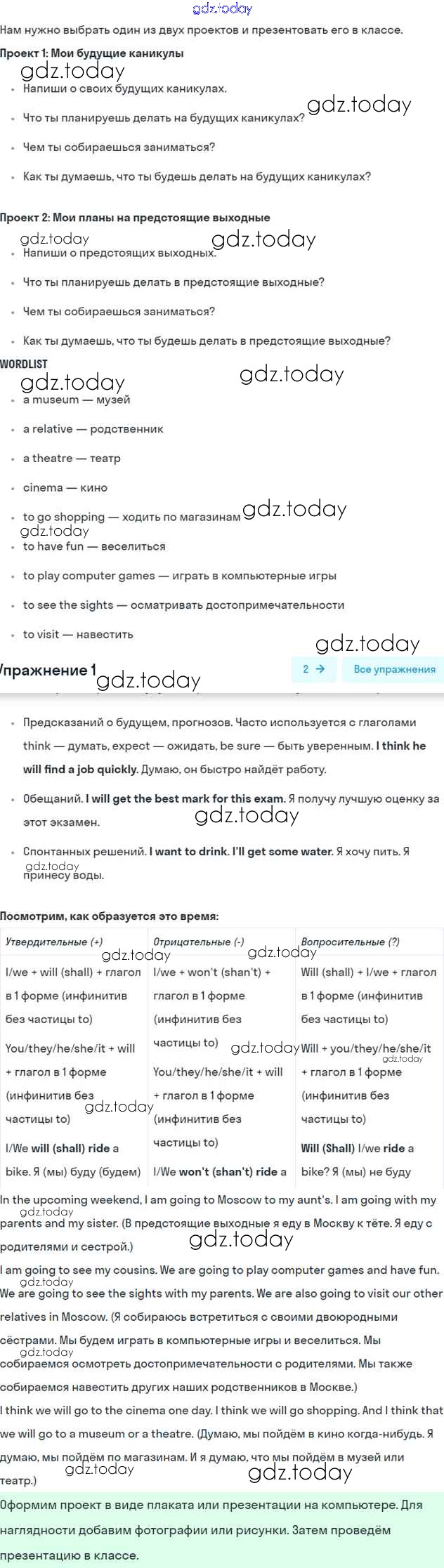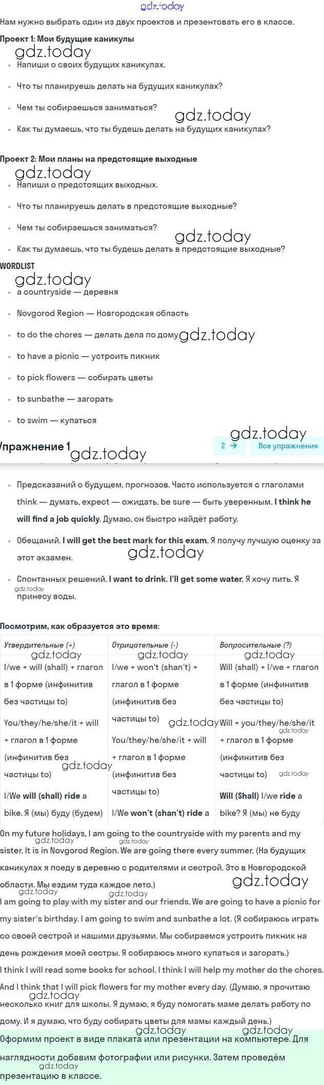 Ответы к Lesson 6. What will you do on holidays and at the weekends? Решение к Unit 7. My future holiday 1 Учебнику по Английскому языку для 5 класса Кузовлев, Лапа Просвещение УМК 2015