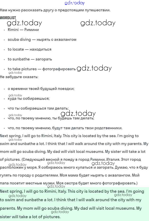 На страницах сайта gdz.today вы найдете учебный и вспомогательный материал, направленный на улучшения знаний школьной программы. ГДЗ - онлайн мир знаний Lesson 7-8. Test yourself Решение к Unit 7. My future holiday 1 Учебнику по Английскому языку для 5 класса Кузовлев, Лапа Просвещение УМК 2015