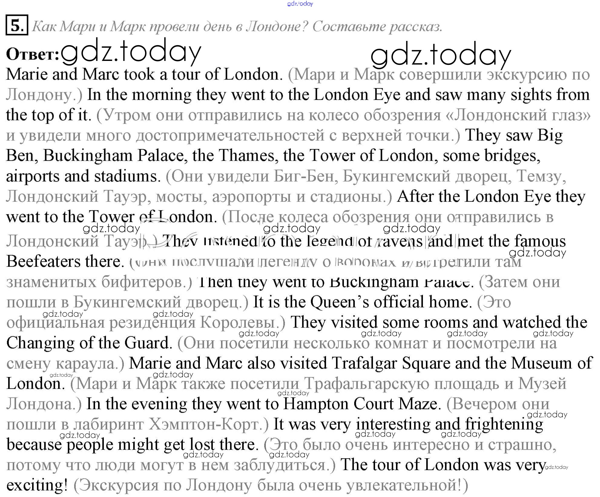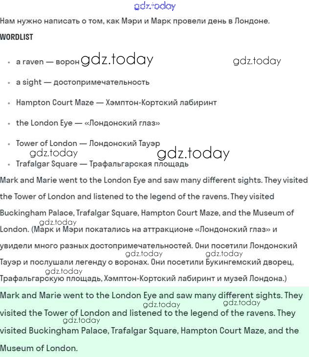 На страницах сайта gdz.today вы найдете учебный и вспомогательный материал, направленный на улучшения знаний школьной программы. ГДЗ - онлайн мир знаний Lesson 2. A tour of London Решение к Unit 8. My best impressions 5 Учебнику по Английскому языку для 5 класса Кузовлев, Лапа Просвещение УМК 2015