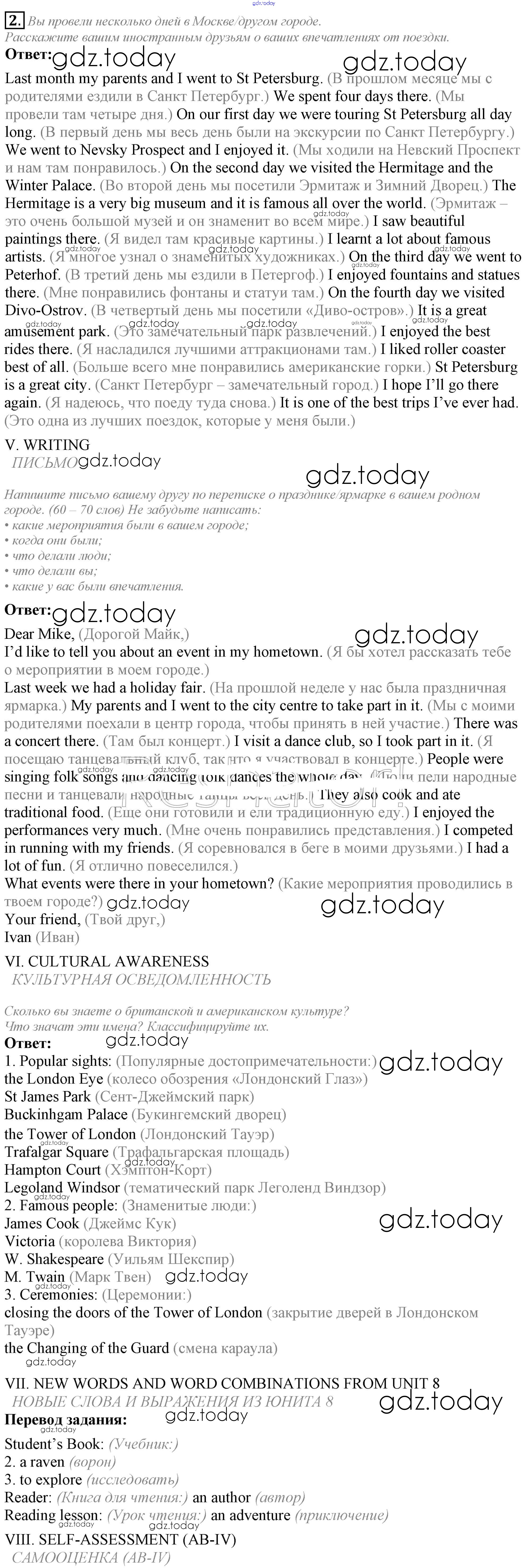 Ответы к Lesson 7-8. Test yourself Решение к Unit 8. My best impressions 2 Учебнику по Английскому языку для 5 класса Кузовлев, Лапа Просвещение УМК 2015