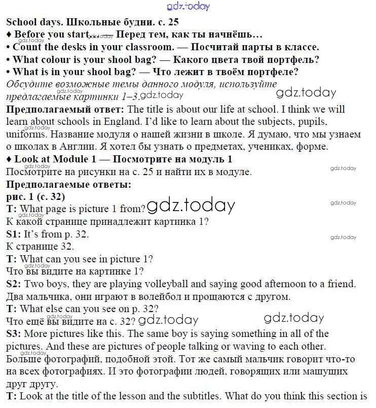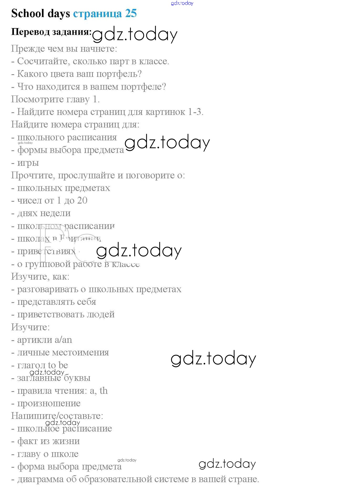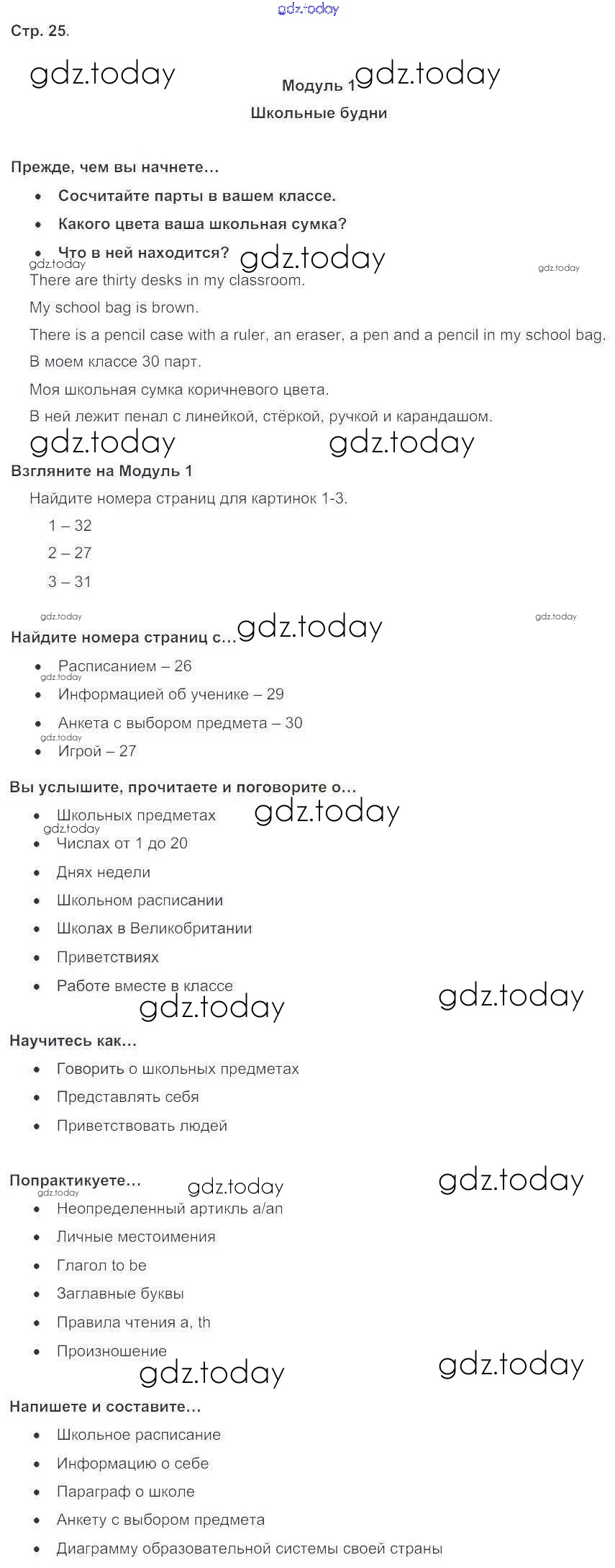 Ответы к Решение к Module 1. School days стр. 25 Учебнику по Английскому языку для 5 класса Ваулина, Дули Просвещение Spotlight 2015