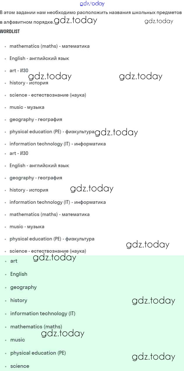 На страницах сайта gdz.today вы найдете учебный и вспомогательный материал, направленный на улучшения знаний школьной программы. ГДЗ - онлайн мир знаний Решение к Module 1. School days стр. 25 Учебнику по Английскому языку для 5 класса Ваулина, Дули Просвещение Spotlight 2015
