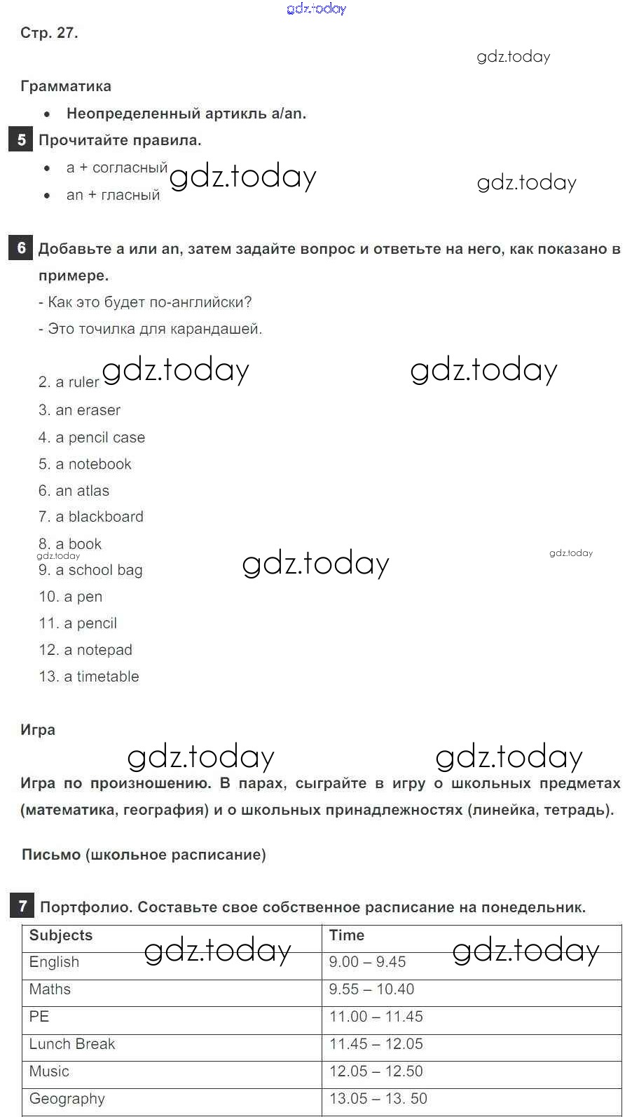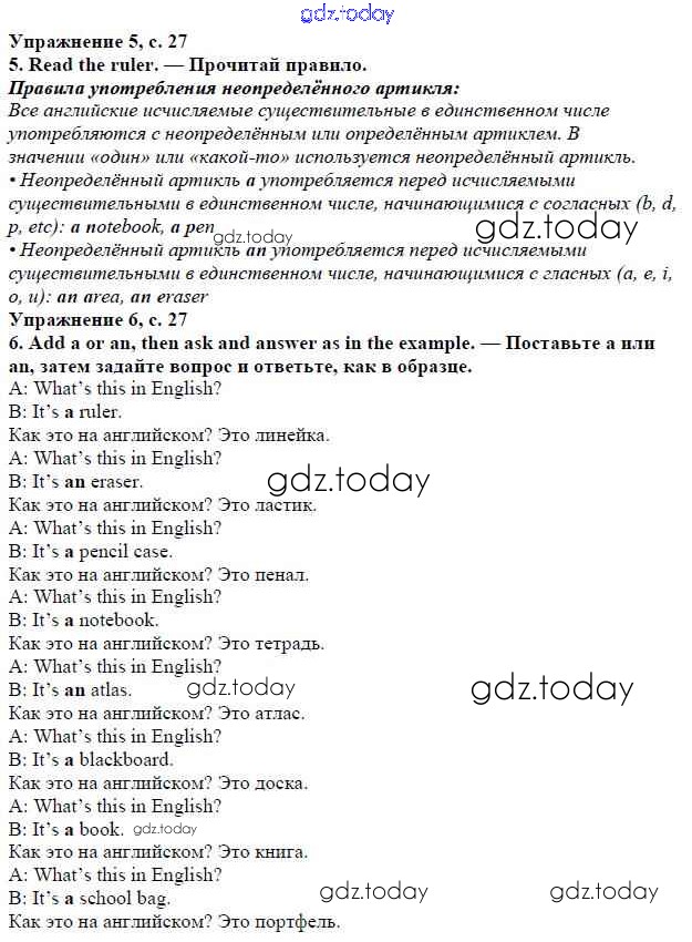 На страницах сайта gdz.today вы найдете учебный и вспомогательный материал, направленный на улучшения знаний школьной программы. ГДЗ - онлайн мир знаний Решение к Module 1. School days стр. 27 Учебнику по Английскому языку для 5 класса Ваулина, Дули Просвещение Spotlight 2015