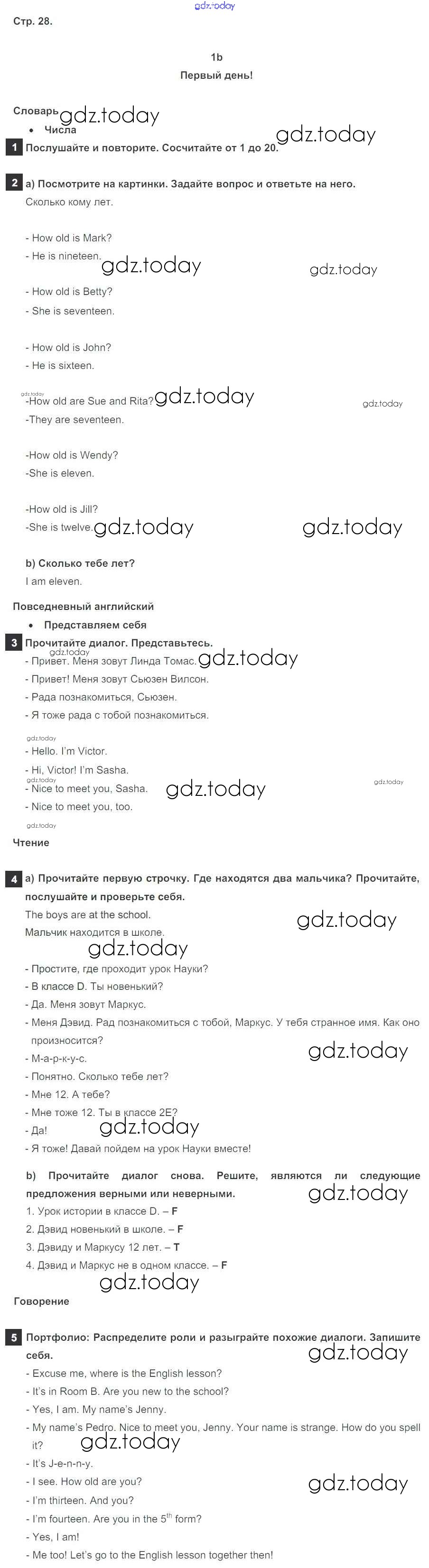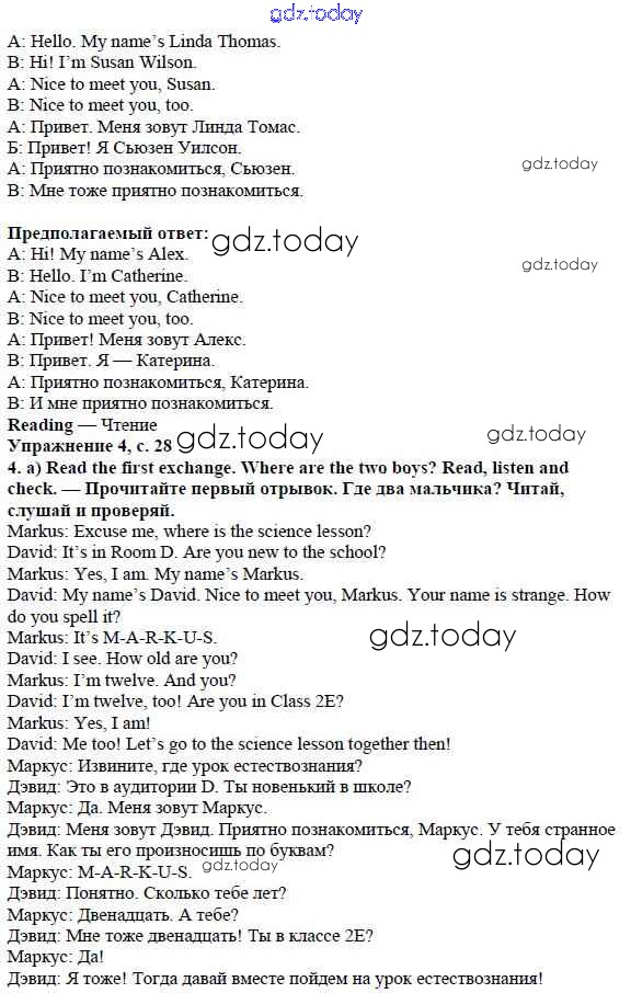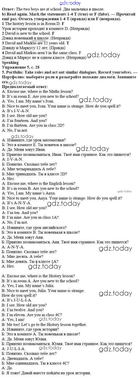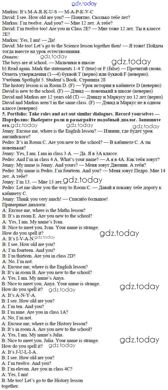 Ответы к Решение к Module 1. School days стр. 28 Учебнику по Английскому языку для 5 класса Ваулина, Дули Просвещение Spotlight 2015