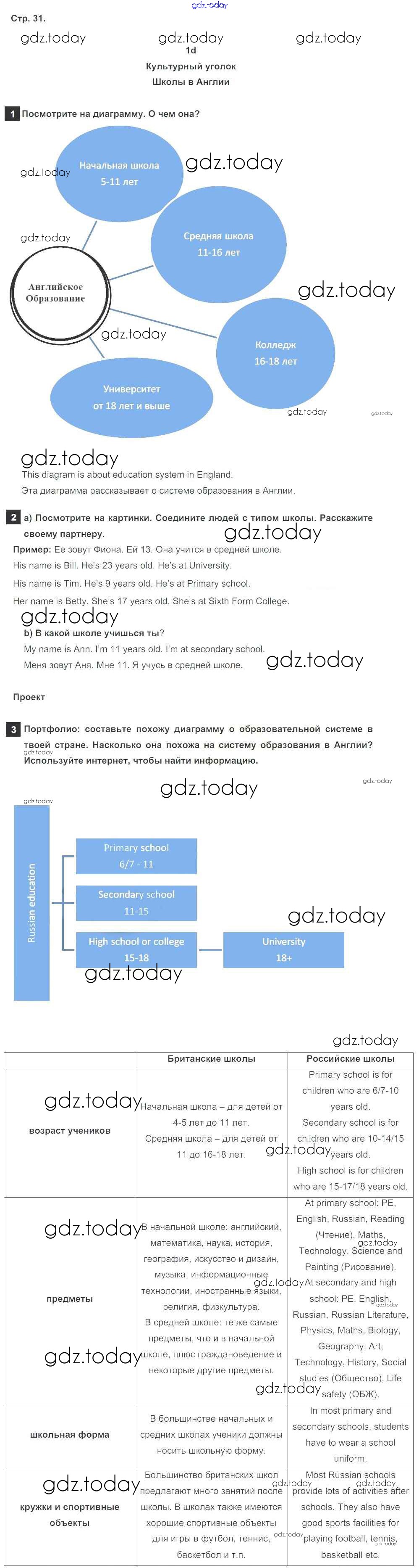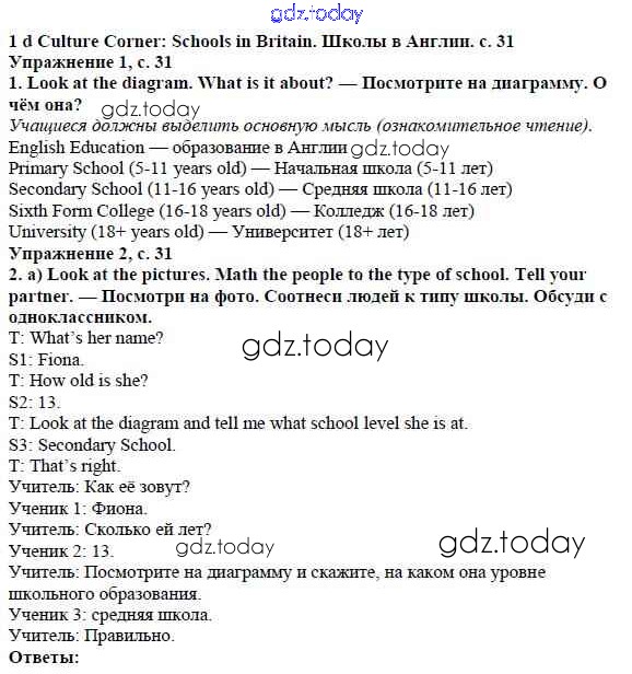 Ответы к Решение к Module 1. School days стр. 31 Учебнику по Английскому языку для 5 класса Ваулина, Дули Просвещение Spotlight 2015