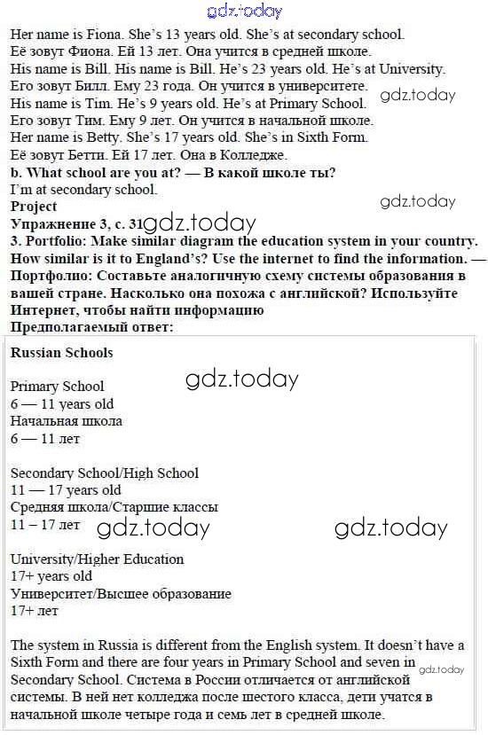 На страницах сайта gdz.today вы найдете учебный и вспомогательный материал, направленный на улучшения знаний школьной программы. ГДЗ - онлайн мир знаний Решение к Module 1. School days стр. 31 Учебнику по Английскому языку для 5 класса Ваулина, Дули Просвещение Spotlight 2015