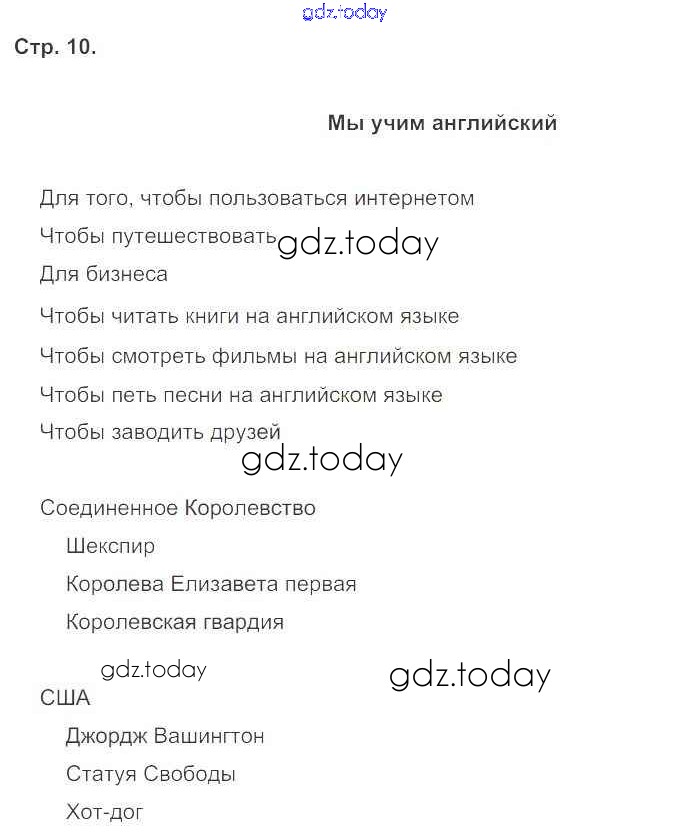 На страницах сайта gdz.today вы найдете учебный и вспомогательный материал, направленный на улучшения знаний школьной программы. ГДЗ - онлайн мир знаний Решение к Starter Unit стр. 10 Учебнику по Английскому языку для 5 класса Ваулина, Дули Просвещение Spotlight 2015