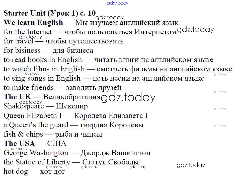 Ответы к Решение к Starter Unit стр. 10 Учебнику по Английскому языку для 5 класса Ваулина, Дули Просвещение Spotlight 2015