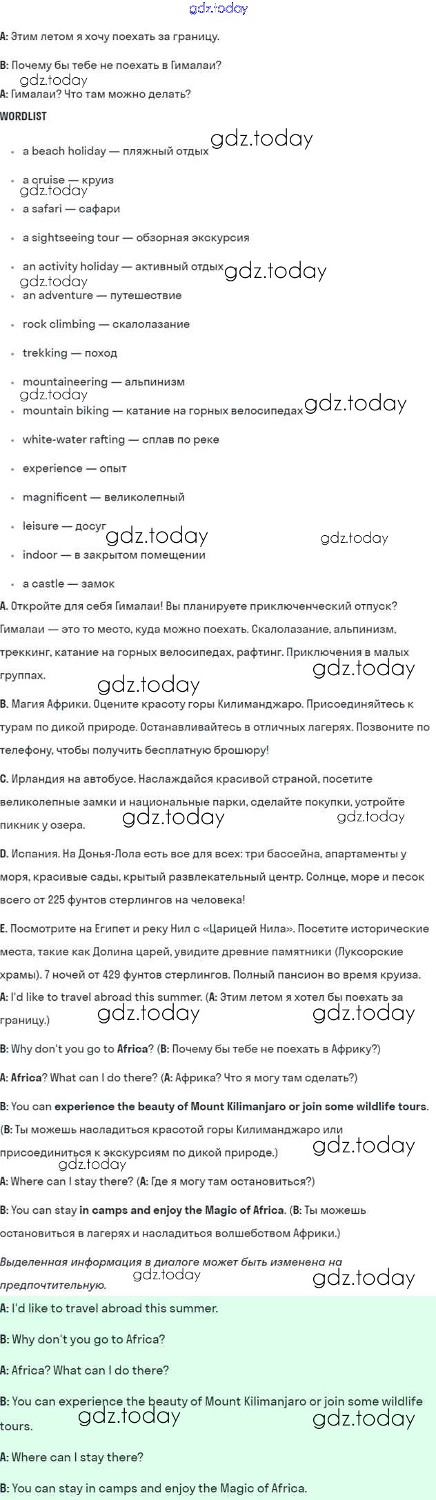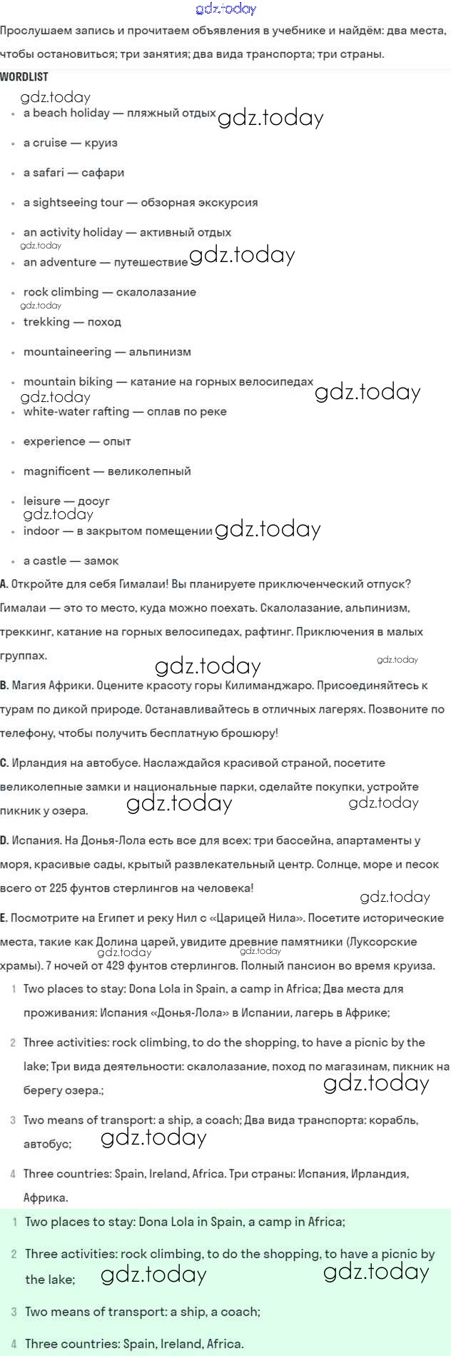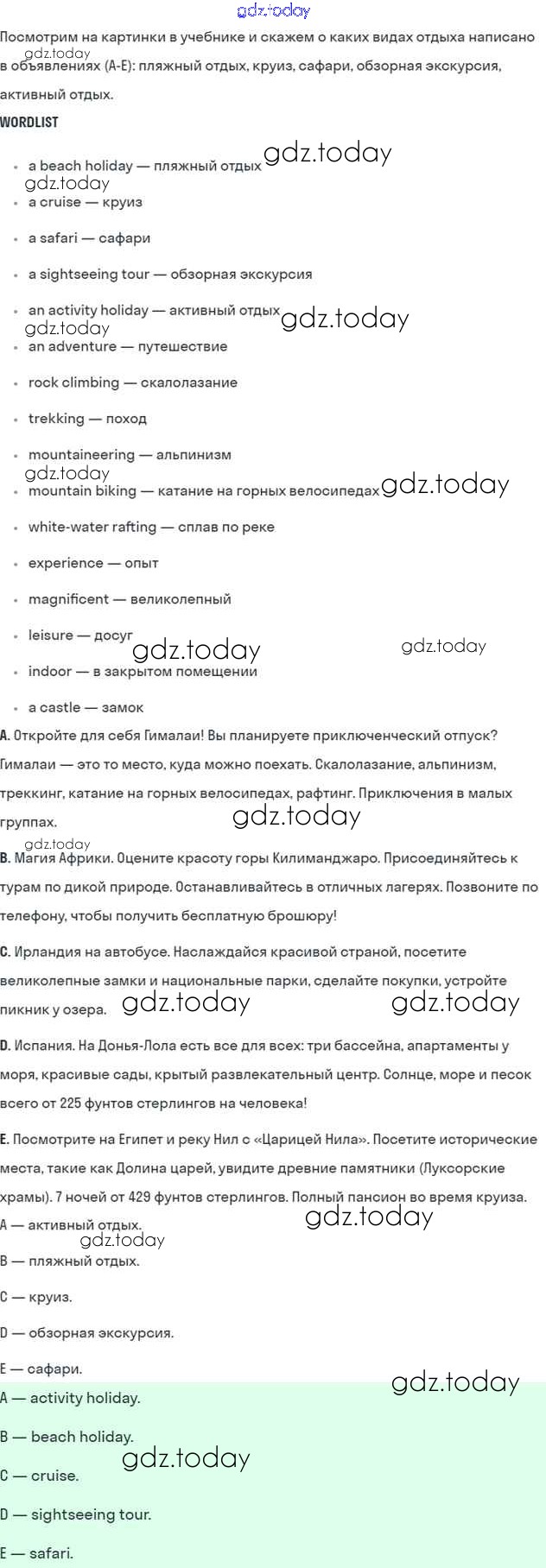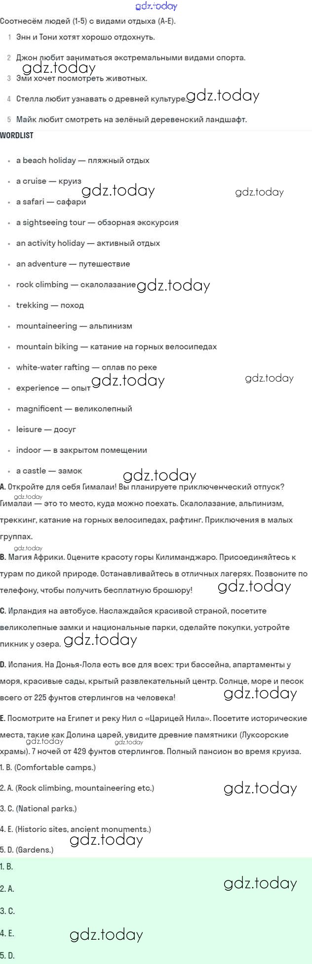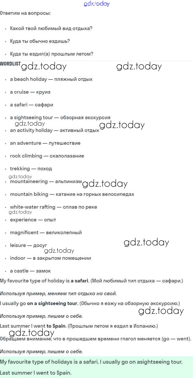 На страницах сайта gdz.today вы найдете учебный и вспомогательный материал, направленный на улучшения знаний школьной программы. ГДЗ - онлайн мир знаний Решение к Module 10. Holidays стр. 116 Учебнику по Английскому языку для 5 класса Ваулина, Дули Просвещение Spotlight 2015