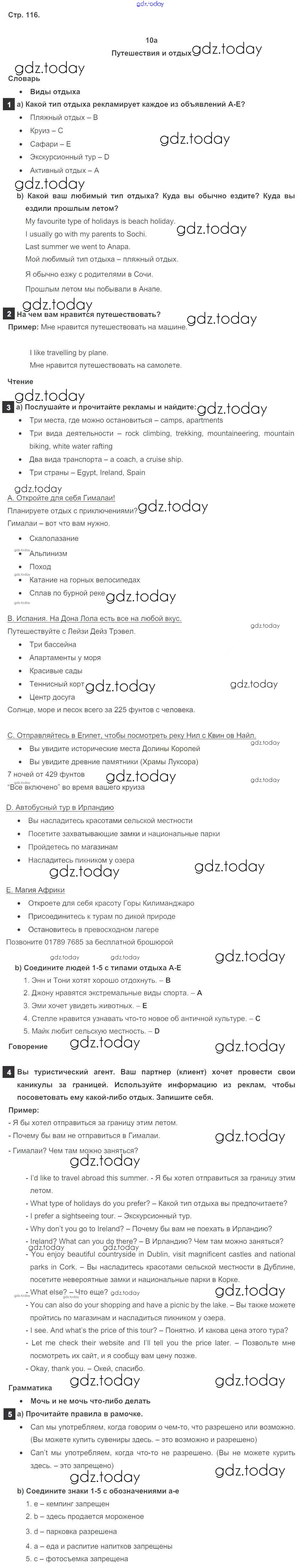 Ответы к Решение к Module 10. Holidays стр. 116 Учебнику по Английскому языку для 5 класса Ваулина, Дули Просвещение Spotlight 2015