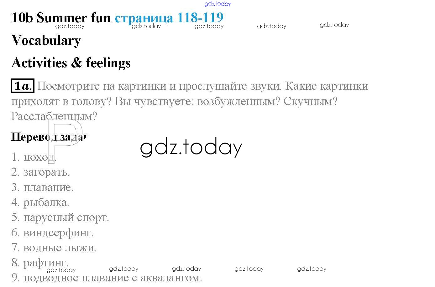 На страницах сайта gdz.today вы найдете учебный и вспомогательный материал, направленный на улучшения знаний школьной программы. ГДЗ - онлайн мир знаний Решение к Module 10. Holidays стр. 118 Учебнику по Английскому языку для 5 класса Ваулина, Дули Просвещение Spotlight 2015