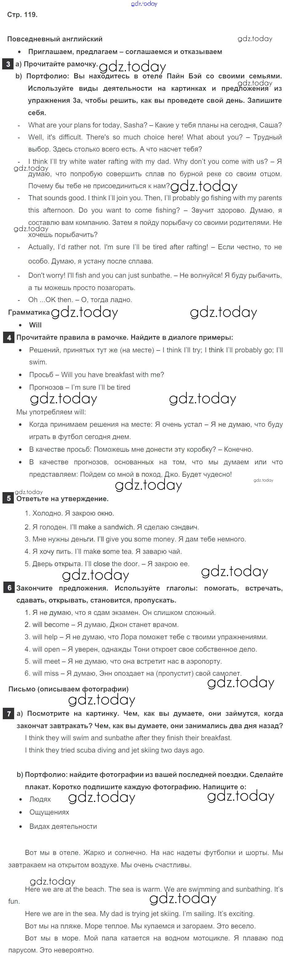 На страницах сайта gdz.today вы найдете учебный и вспомогательный материал, направленный на улучшения знаний школьной программы. ГДЗ - онлайн мир знаний Решение к Module 10. Holidays стр. 119 Учебнику по Английскому языку для 5 класса Ваулина, Дули Просвещение Spotlight 2015