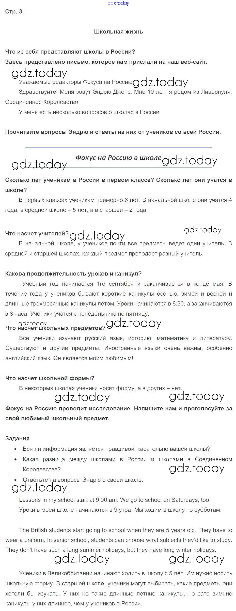 Ответы к Решение к Spotlight on Russia стр. 3 Учебнику по Английскому языку для 5 класса Ваулина, Дули Просвещение Spotlight 2015