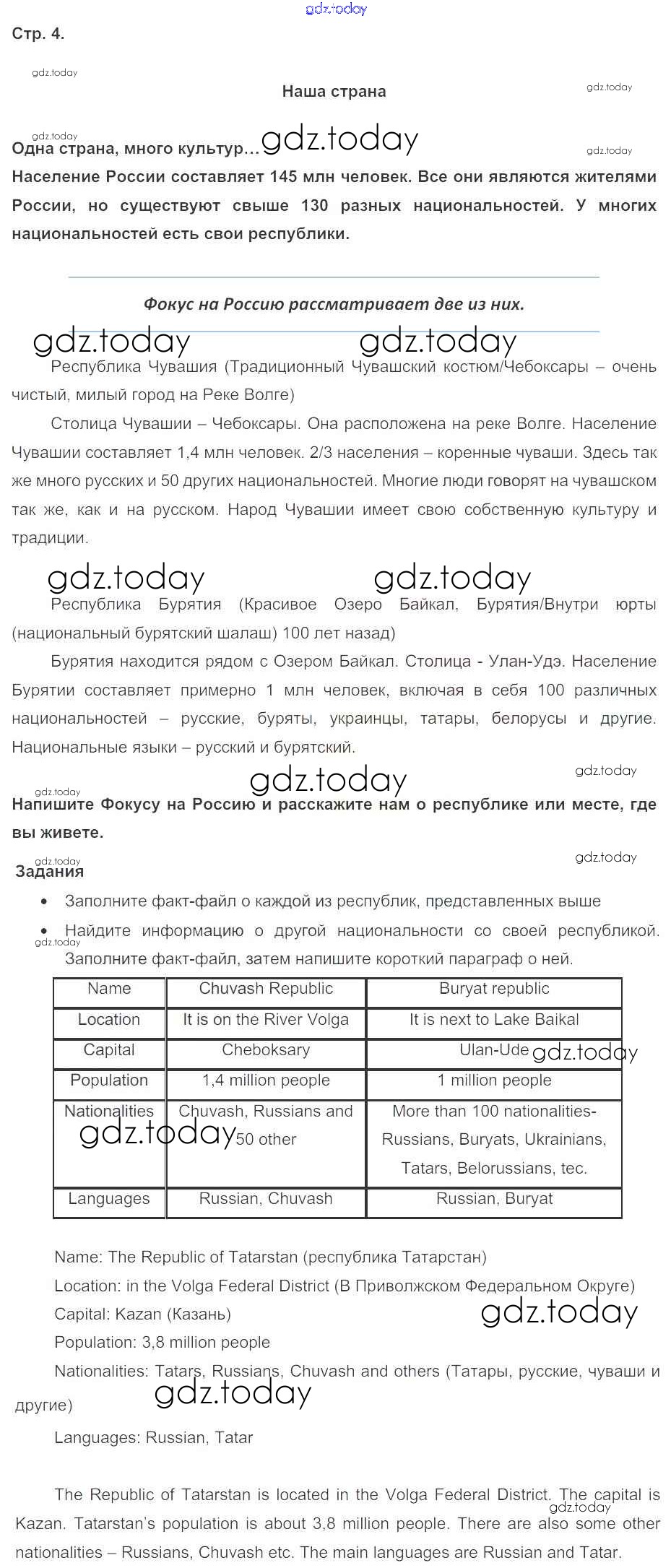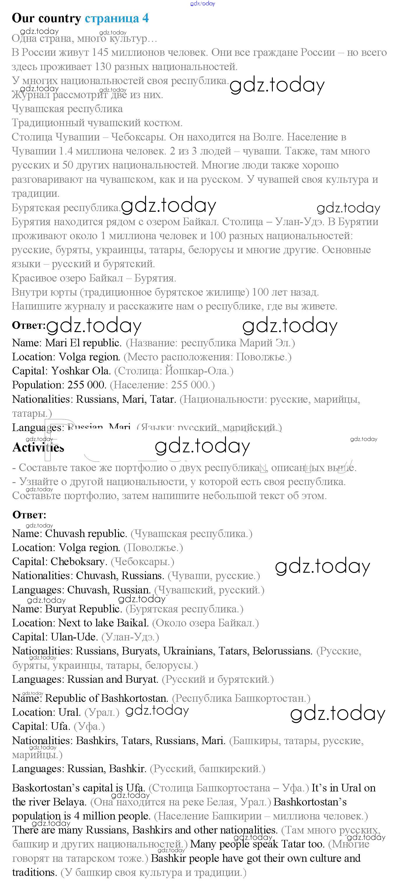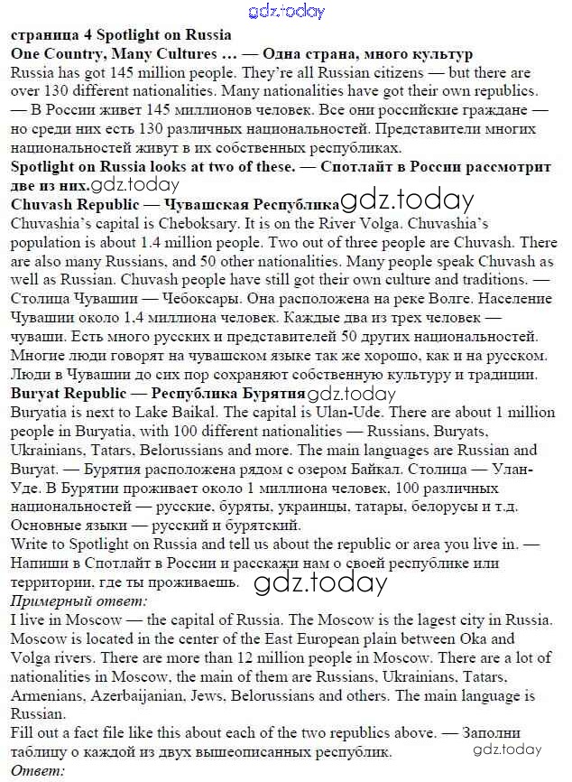 Ответы к Решение к Spotlight on Russia стр. 4 Учебнику по Английскому языку для 5 класса Ваулина, Дули Просвещение Spotlight 2015