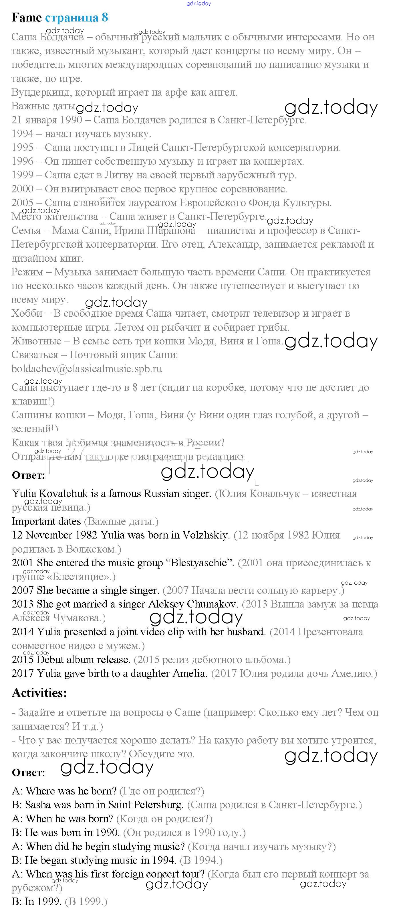 Ответы к Решение к Spotlight on Russia стр. 8 Учебнику по Английскому языку для 5 класса Ваулина, Дули Просвещение Spotlight 2015