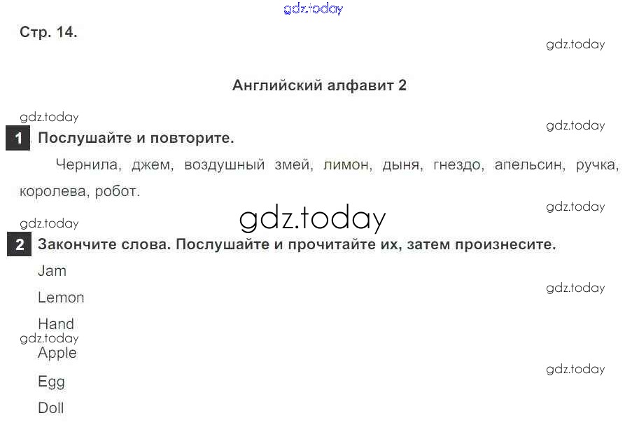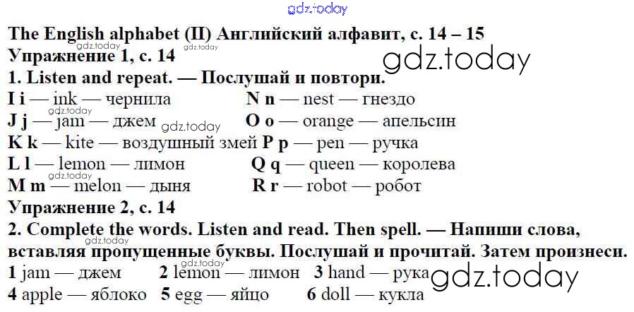 На страницах сайта gdz.today вы найдете учебный и вспомогательный материал, направленный на улучшения знаний школьной программы. ГДЗ - онлайн мир знаний Решение к Starter Unit стр. 14 Учебнику по Английскому языку для 5 класса Ваулина, Дули Просвещение Spotlight 2015