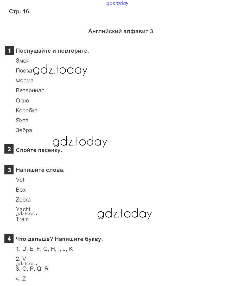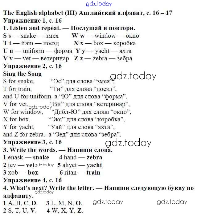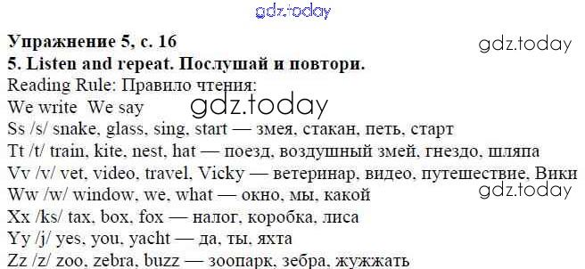На страницах сайта gdz.today вы найдете учебный и вспомогательный материал, направленный на улучшения знаний школьной программы. ГДЗ - онлайн мир знаний Решение к Starter Unit стр. 16 Учебнику по Английскому языку для 5 класса Ваулина, Дули Просвещение Spotlight 2015