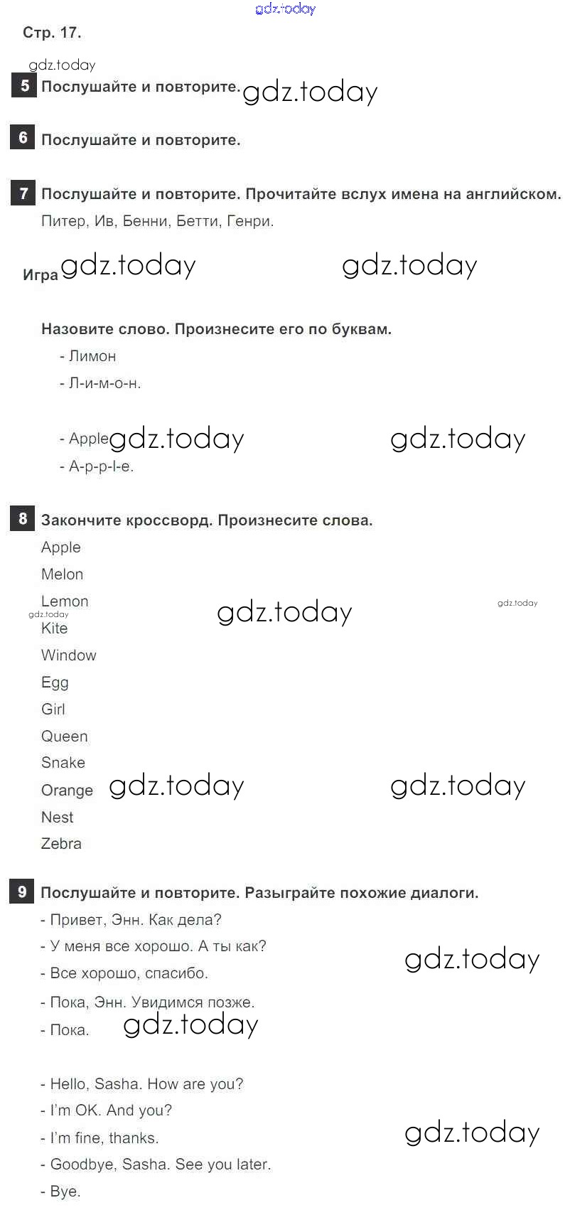 На страницах сайта gdz.today вы найдете учебный и вспомогательный материал, направленный на улучшения знаний школьной программы. ГДЗ - онлайн мир знаний Решение к Starter Unit стр. 17 Учебнику по Английскому языку для 5 класса Ваулина, Дули Просвещение Spotlight 2015