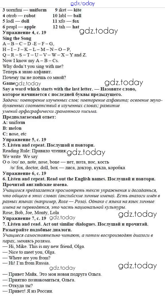 На страницах сайта gdz.today вы найдете учебный и вспомогательный материал, направленный на улучшения знаний школьной программы. ГДЗ - онлайн мир знаний Решение к Starter Unit стр. 19 Учебнику по Английскому языку для 5 класса Ваулина, Дули Просвещение Spotlight 2015