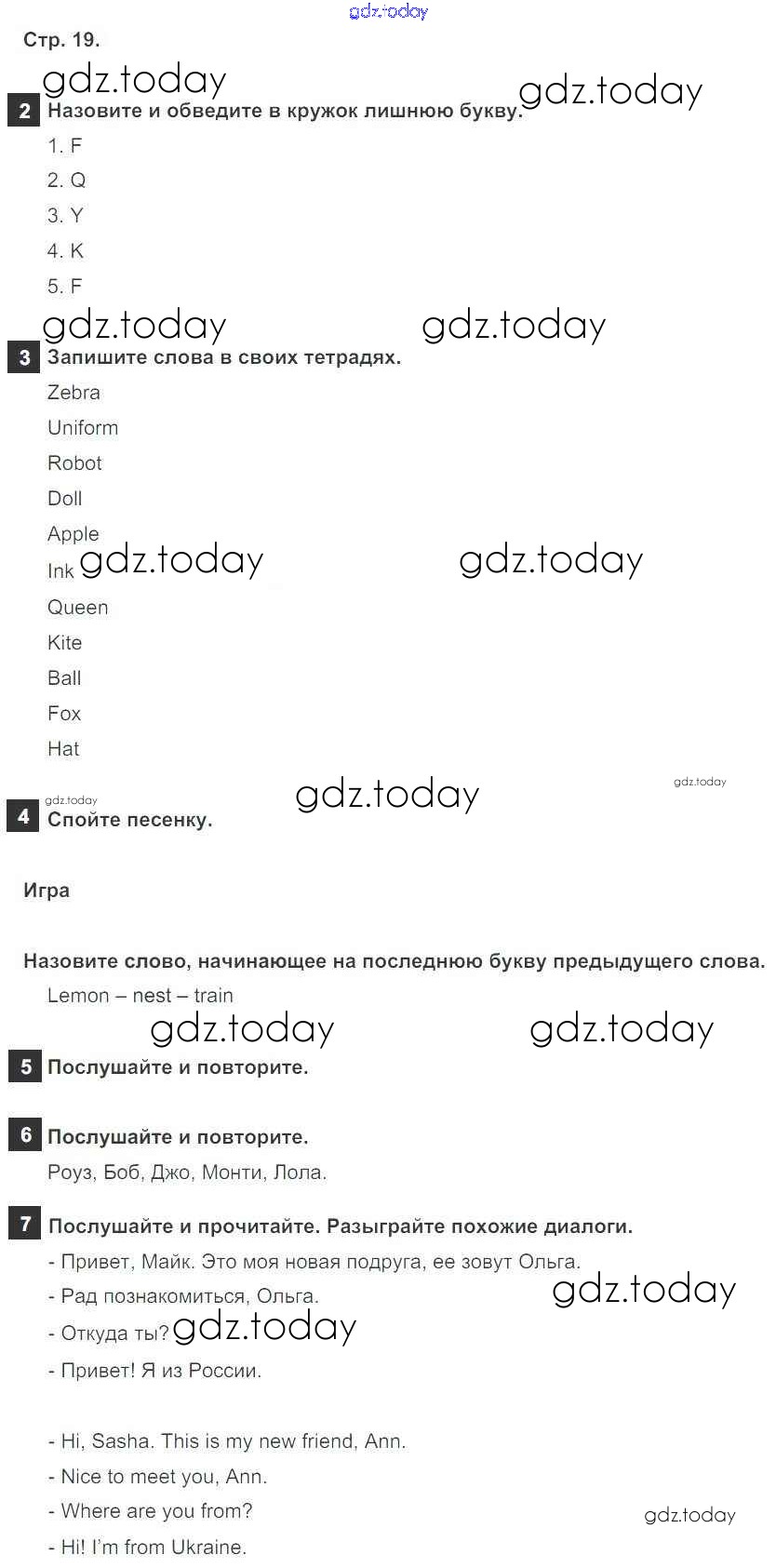 Ответы к Решение к Starter Unit стр. 19 Учебнику по Английскому языку для 5 класса Ваулина, Дули Просвещение Spotlight 2015