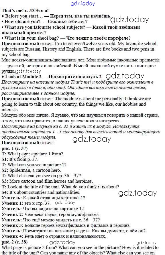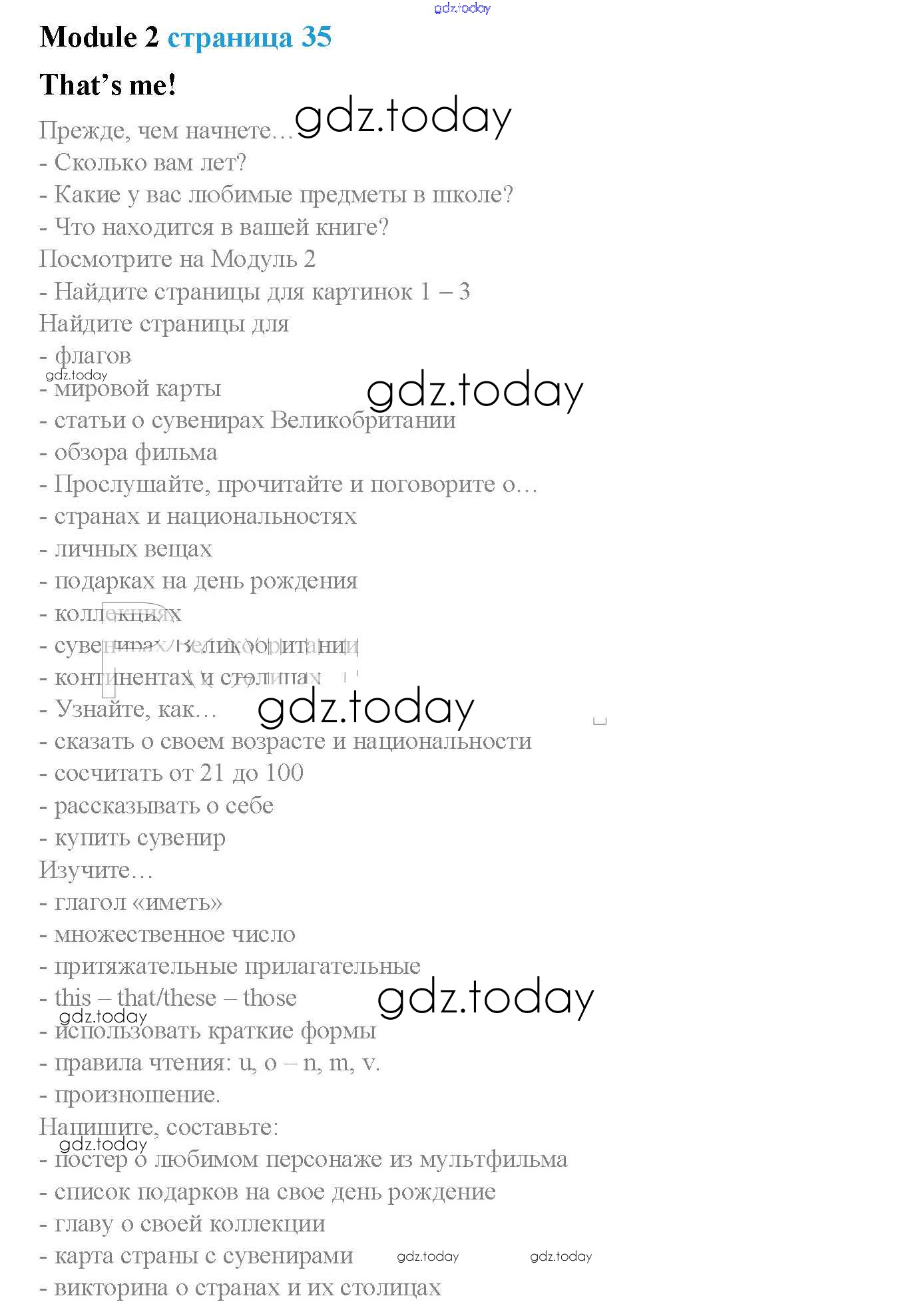 На страницах сайта gdz.today вы найдете учебный и вспомогательный материал, направленный на улучшения знаний школьной программы. ГДЗ - онлайн мир знаний Решение к Module 2. That`s me! стр. 35 Учебнику по Английскому языку для 5 класса Ваулина, Дули Просвещение Spotlight 2015