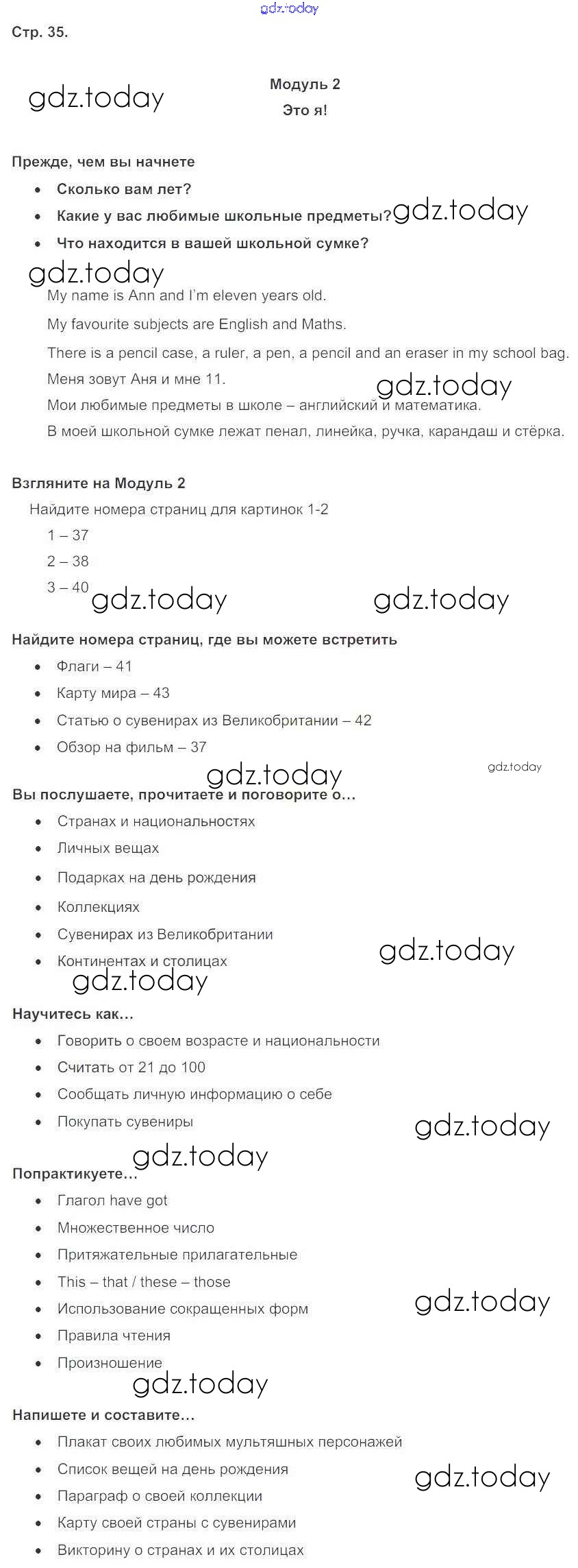 Ответы к Решение к Module 2. That`s me! стр. 35 Учебнику по Английскому языку для 5 класса Ваулина, Дули Просвещение Spotlight 2015