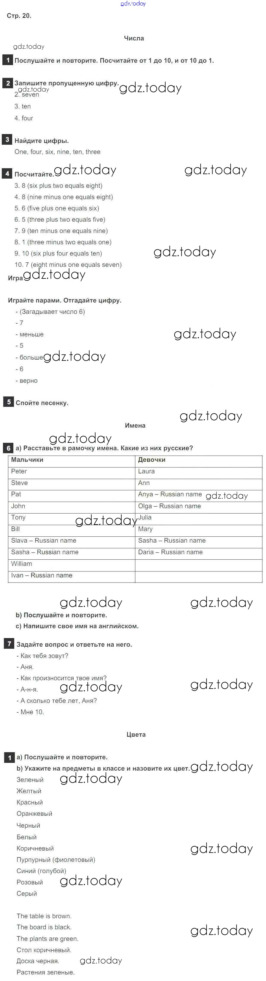 Ответы к Решение к Starter Unit стр. 20 Учебнику по Английскому языку для 5 класса Ваулина, Дули Просвещение Spotlight 2015