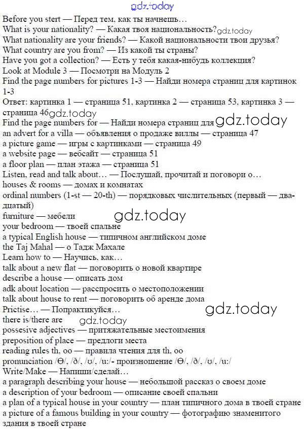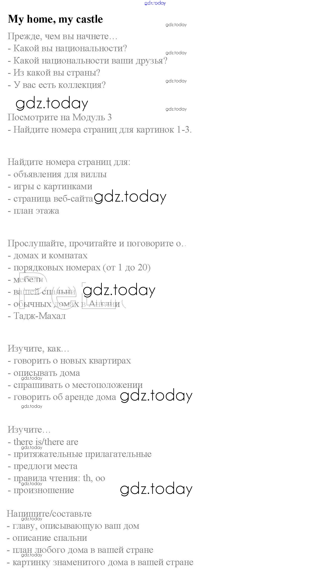 На страницах сайта gdz.today вы найдете учебный и вспомогательный материал, направленный на улучшения знаний школьной программы. ГДЗ - онлайн мир знаний Решение к Module 3. My home, my castle стр. 45 Учебнику по Английскому языку для 5 класса Ваулина, Дули Просвещение Spotlight 2015