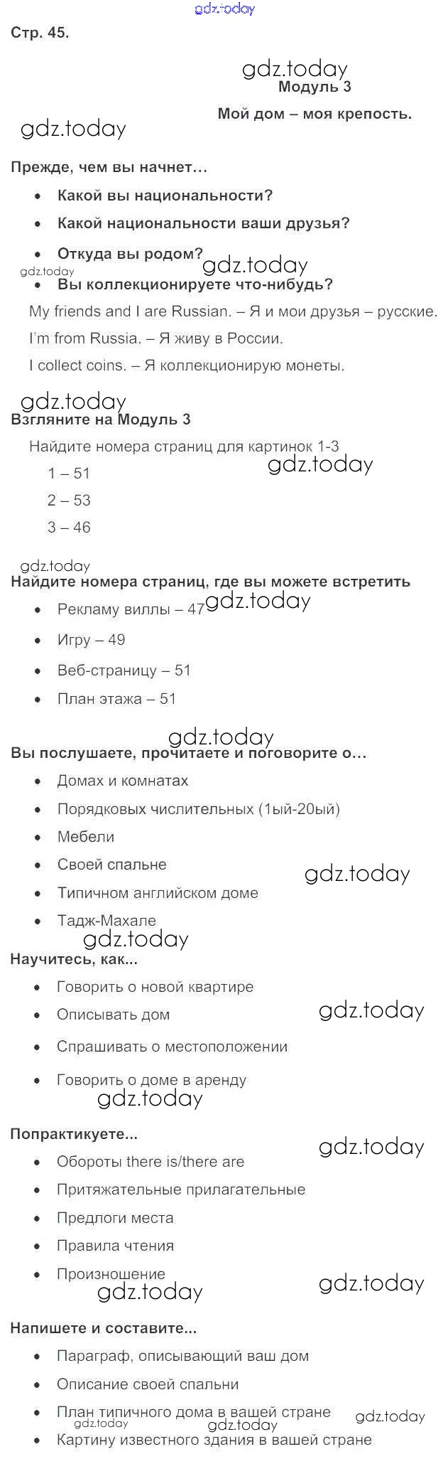 Ответы к Решение к Module 3. My home, my castle стр. 45 Учебнику по Английскому языку для 5 класса Ваулина, Дули Просвещение Spotlight 2015
