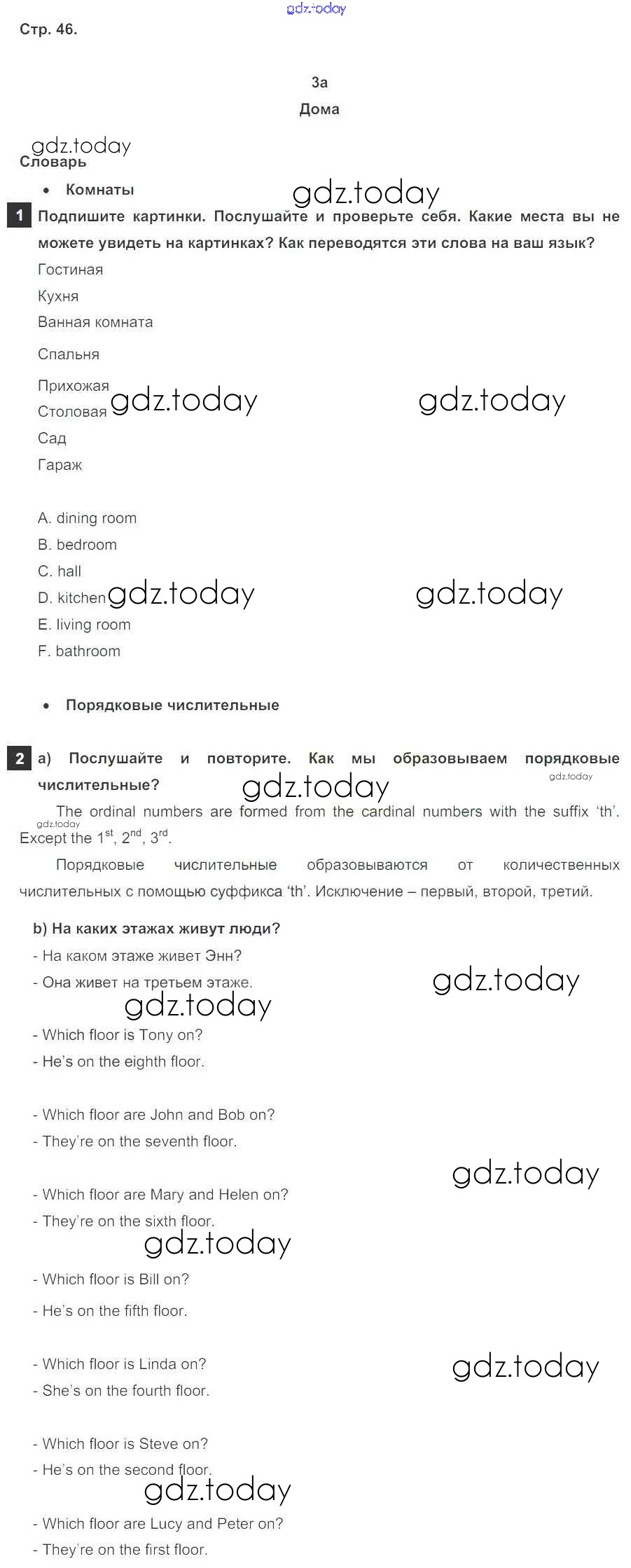 На страницах сайта gdz.today вы найдете учебный и вспомогательный материал, направленный на улучшения знаний школьной программы. ГДЗ - онлайн мир знаний Решение к Module 3. My home, my castle стр. 46 Учебнику по Английскому языку для 5 класса Ваулина, Дули Просвещение Spotlight 2015