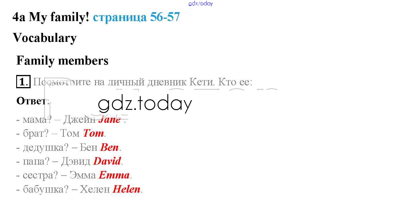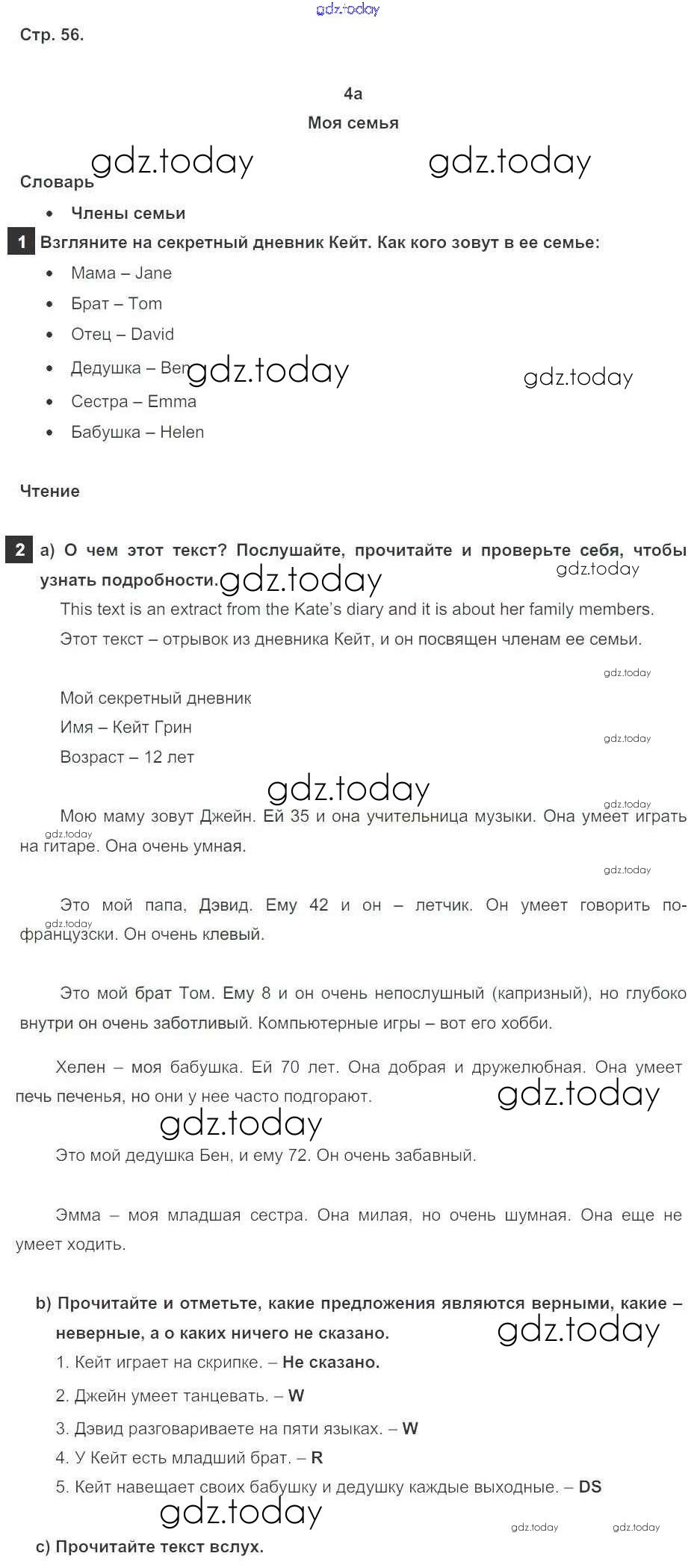 На страницах сайта gdz.today вы найдете учебный и вспомогательный материал, направленный на улучшения знаний школьной программы. ГДЗ - онлайн мир знаний Решение к Module 4. Family ties стр. 56 Учебнику по Английскому языку для 5 класса Ваулина, Дули Просвещение Spotlight 2015