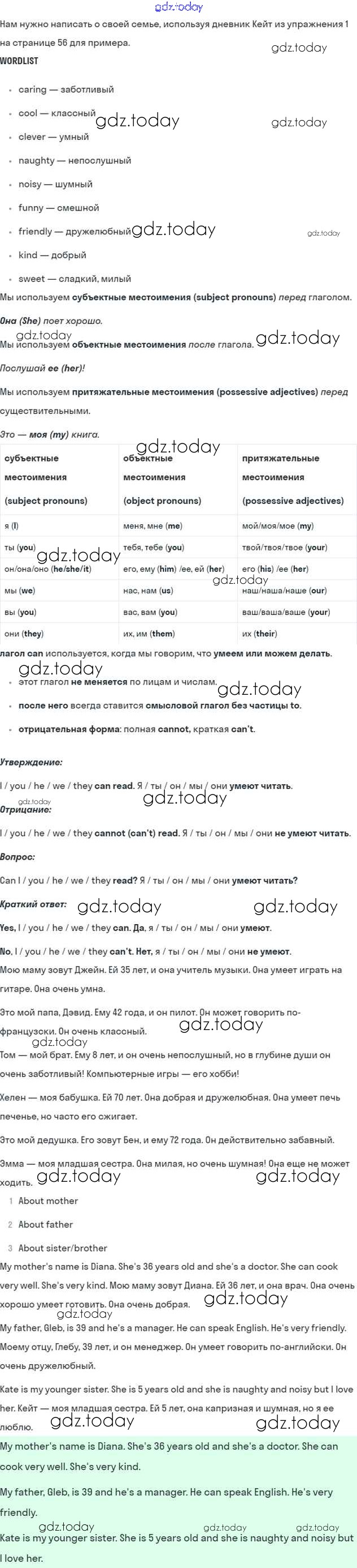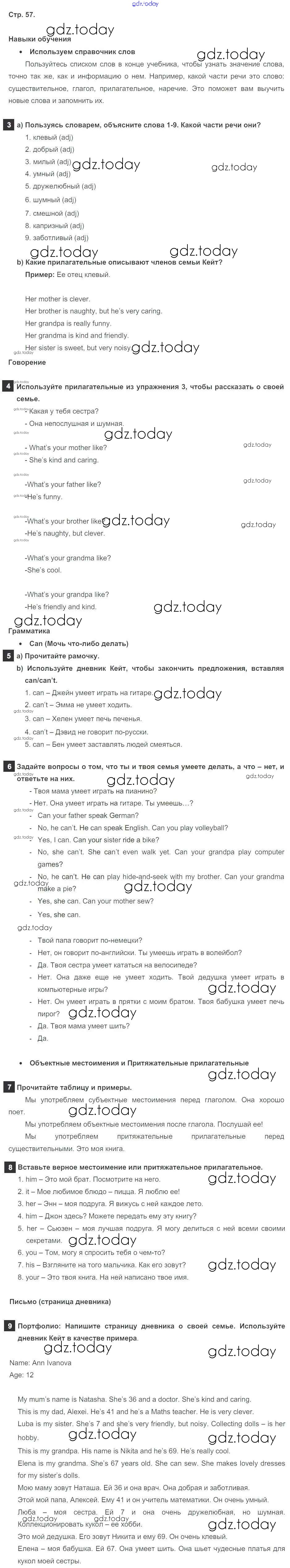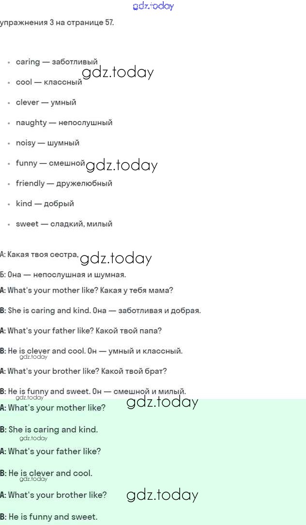 На страницах сайта gdz.today вы найдете учебный и вспомогательный материал, направленный на улучшения знаний школьной программы. ГДЗ - онлайн мир знаний Решение к Module 4. Family ties стр. 57 Учебнику по Английскому языку для 5 класса Ваулина, Дули Просвещение Spotlight 2015