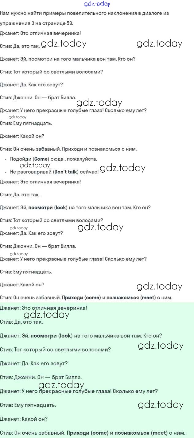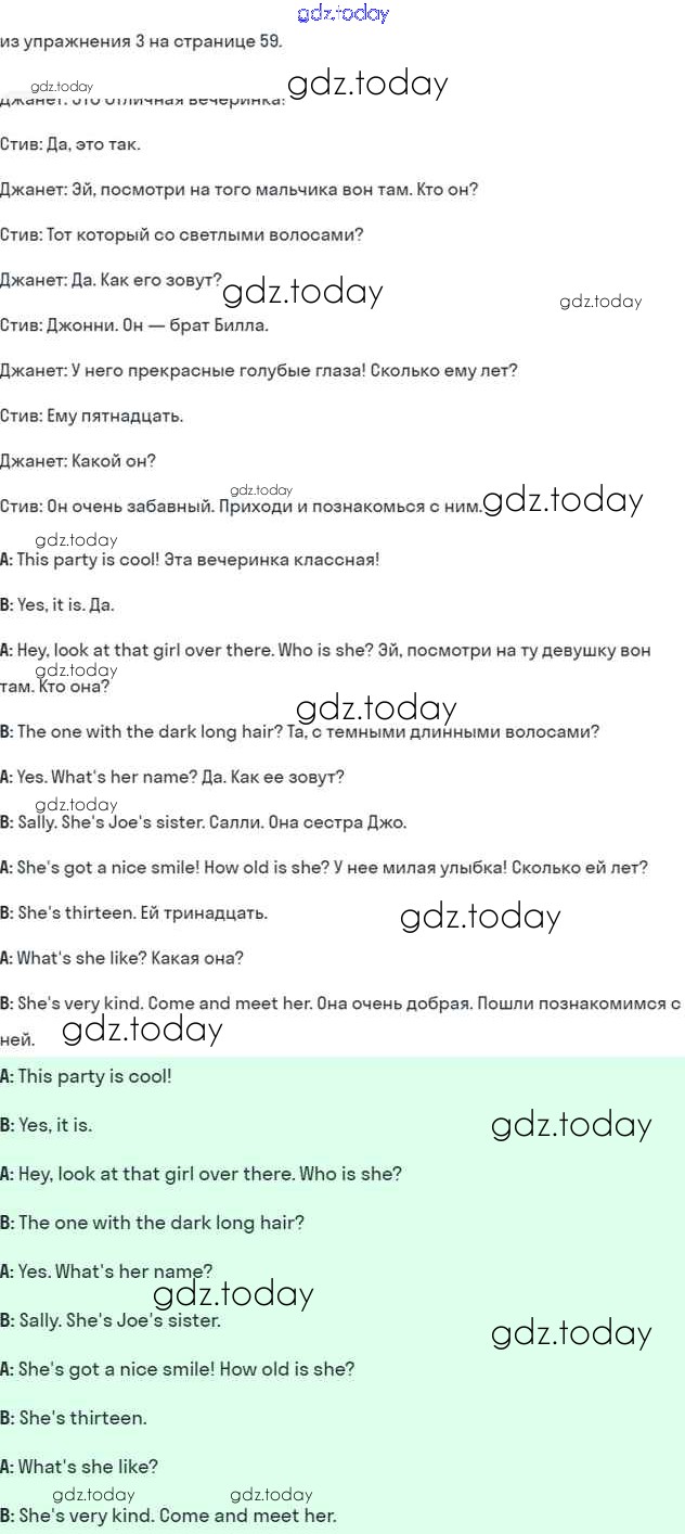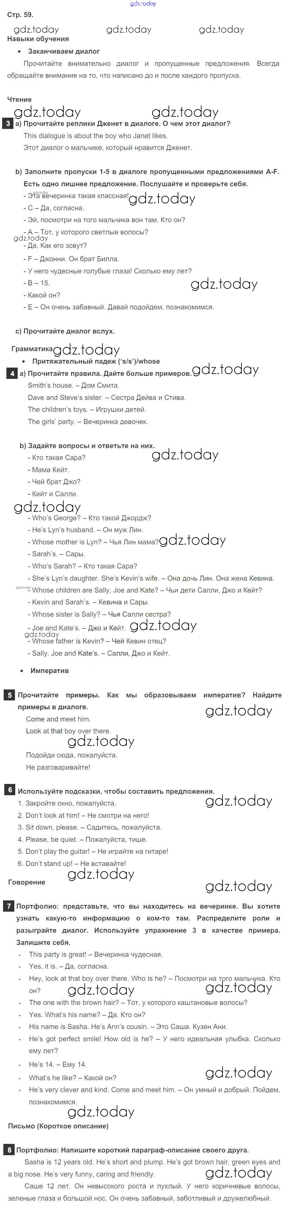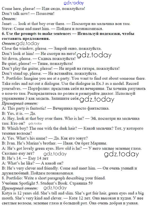 На страницах сайта gdz.today вы найдете учебный и вспомогательный материал, направленный на улучшения знаний школьной программы. ГДЗ - онлайн мир знаний Решение к Module 4. Family ties стр. 59 Учебнику по Английскому языку для 5 класса Ваулина, Дули Просвещение Spotlight 2015