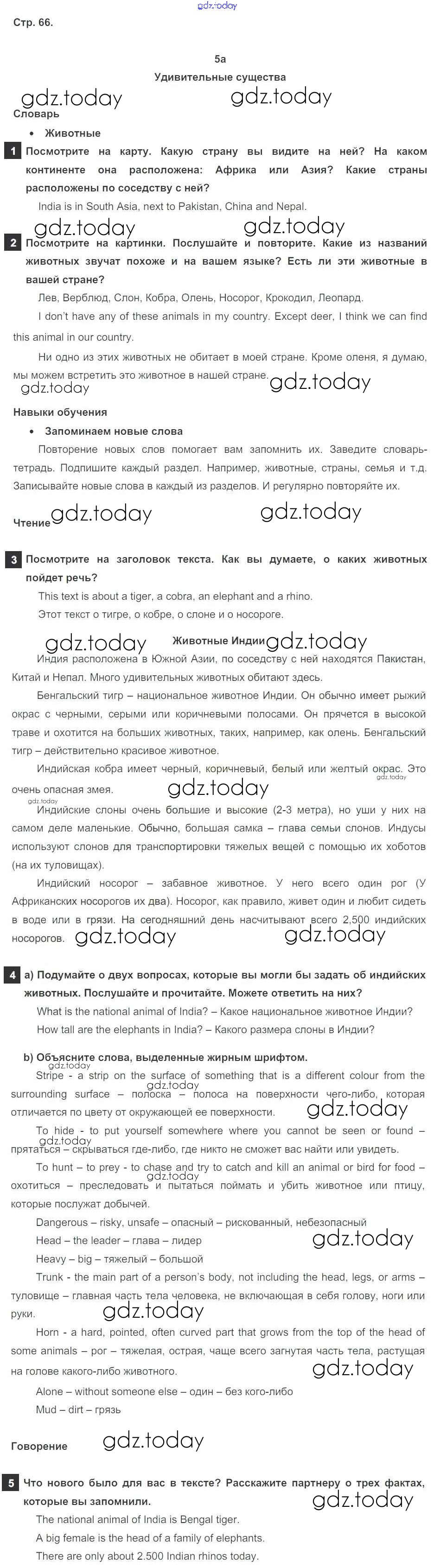 Ответы к Решение к Module 5. World animals стр. 66 Учебнику по Английскому языку для 5 класса Ваулина, Дули Просвещение Spotlight 2015