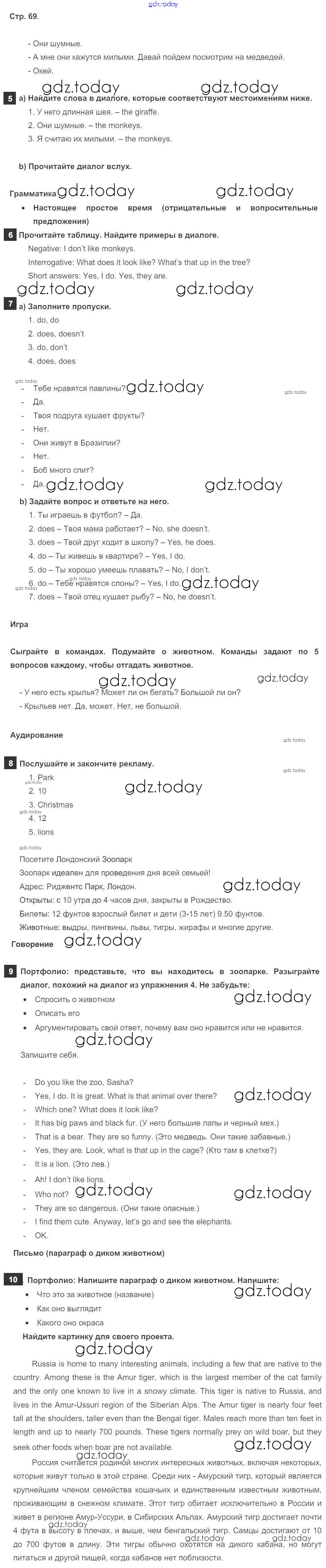 Ответы к Решение к Module 5. World animals стр. 69 Учебнику по Английскому языку для 5 класса Ваулина, Дули Просвещение Spotlight 2015
