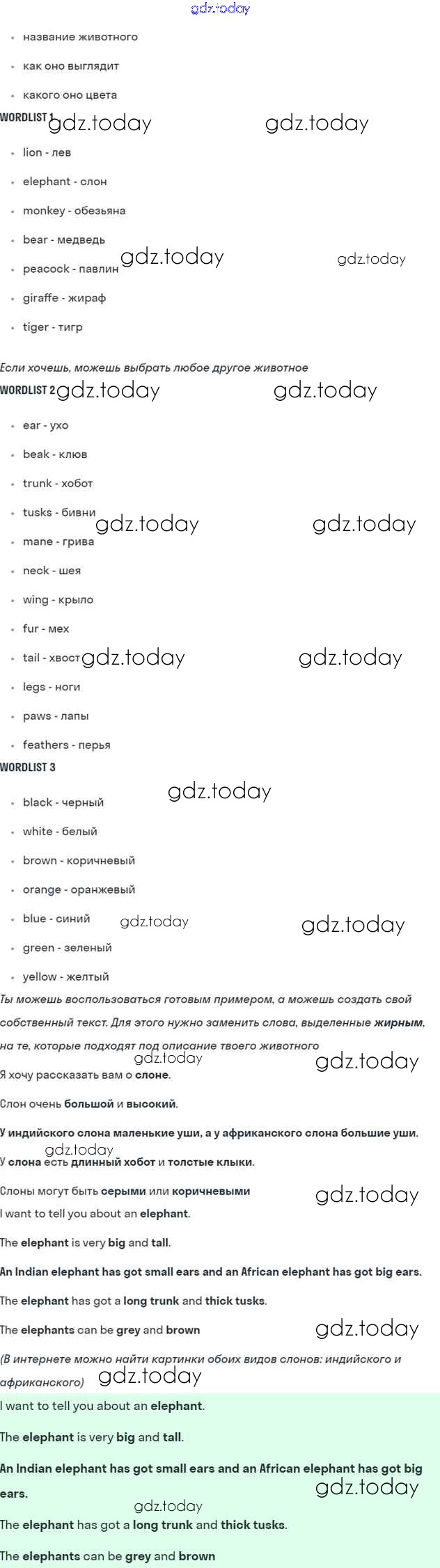 На страницах сайта gdz.today вы найдете учебный и вспомогательный материал, направленный на улучшения знаний школьной программы. ГДЗ - онлайн мир знаний Решение к Module 5. World animals стр. 69 Учебнику по Английскому языку для 5 класса Ваулина, Дули Просвещение Spotlight 2015