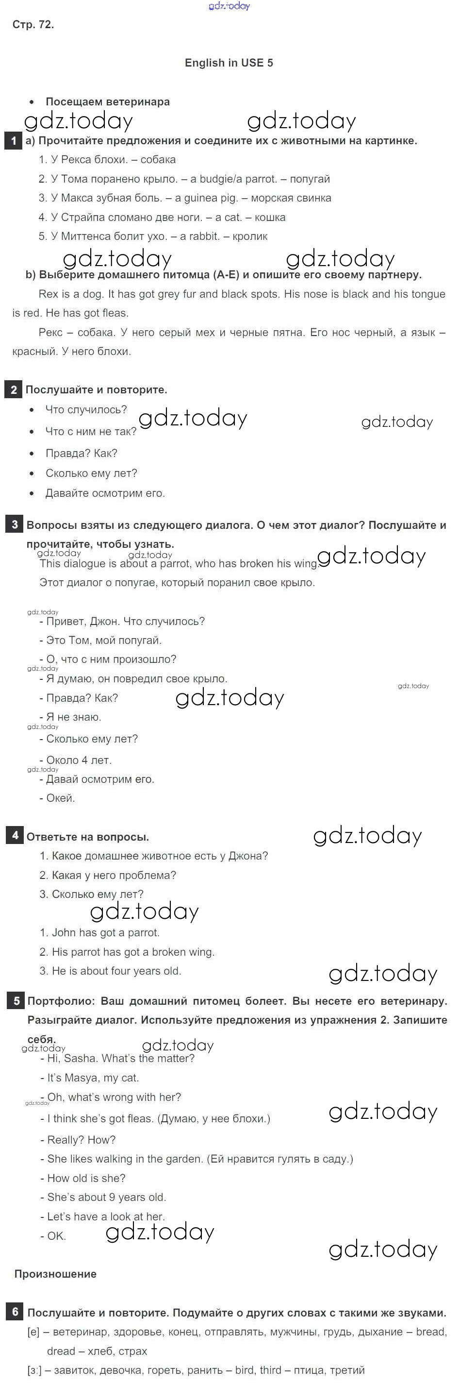 Ответы к Решение к Module 5. World animals стр. 72 Учебнику по Английскому языку для 5 класса Ваулина, Дули Просвещение Spotlight 2015