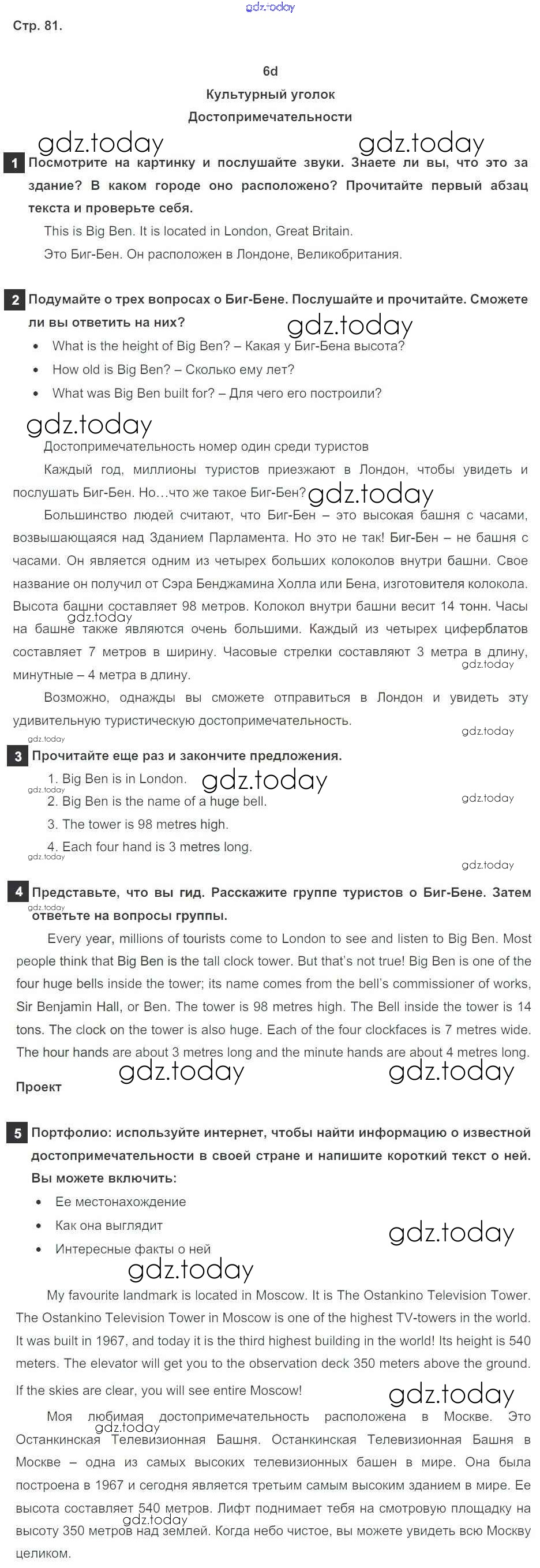 Ответы к Решение к Module 6. Round the clock стр. 81 Учебнику по Английскому языку для 5 класса Ваулина, Дули Просвещение Spotlight 2015