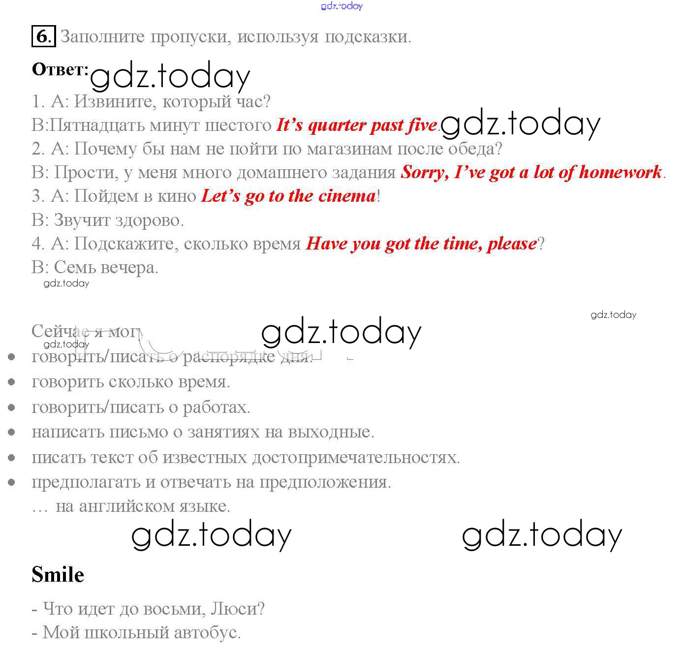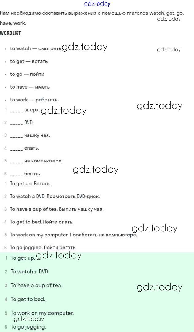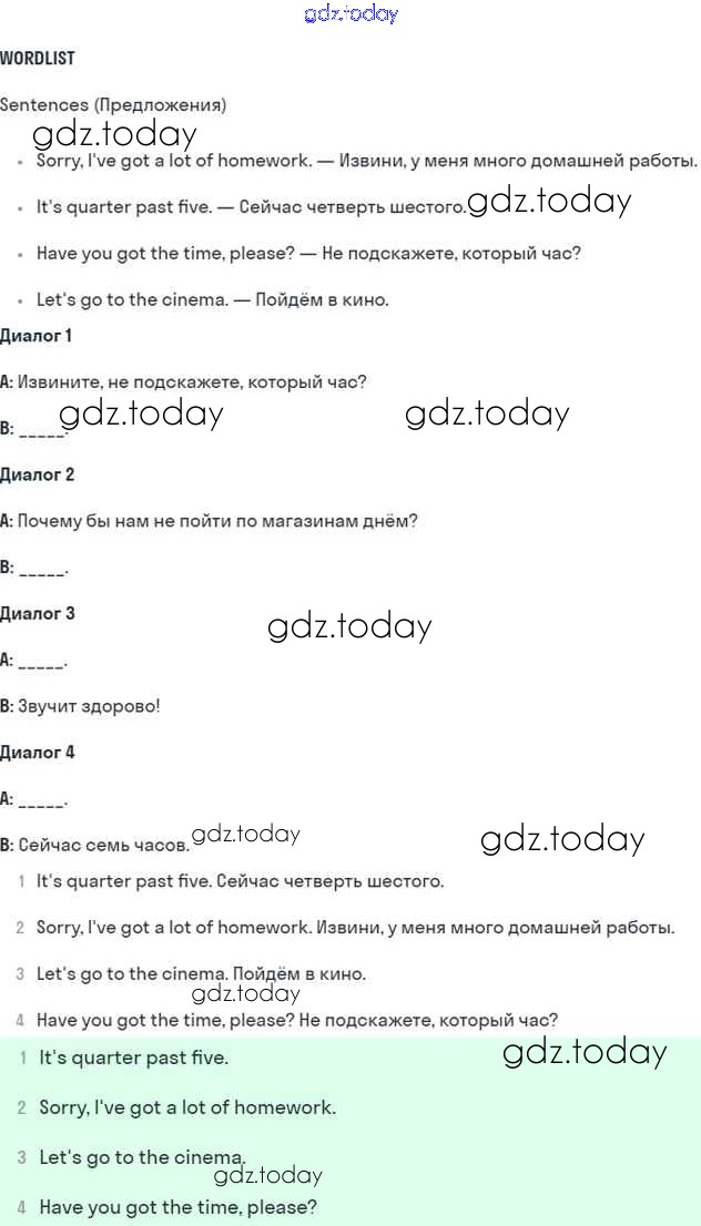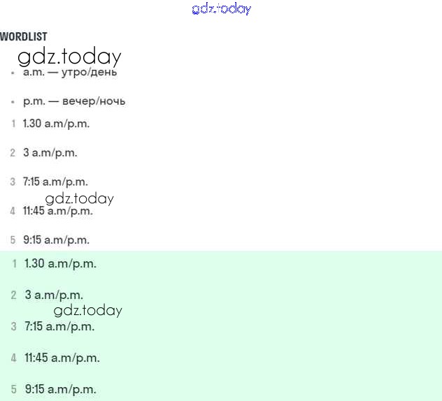 На страницах сайта gdz.today вы найдете учебный и вспомогательный материал, направленный на улучшения знаний школьной программы. ГДЗ - онлайн мир знаний Решение к Module 6. Round the clock стр. 84 Учебнику по Английскому языку для 5 класса Ваулина, Дули Просвещение Spotlight 2015