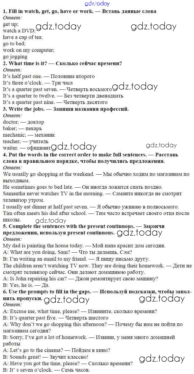 Ответы к Решение к Module 6. Round the clock стр. 84 Учебнику по Английскому языку для 5 класса Ваулина, Дули Просвещение Spotlight 2015