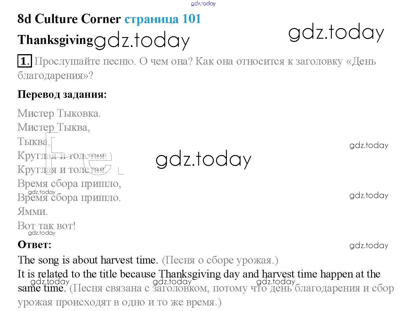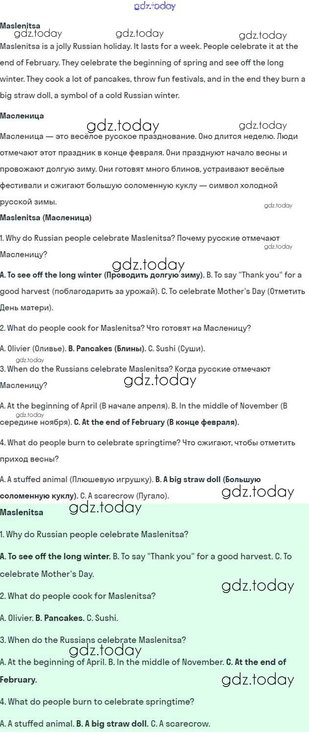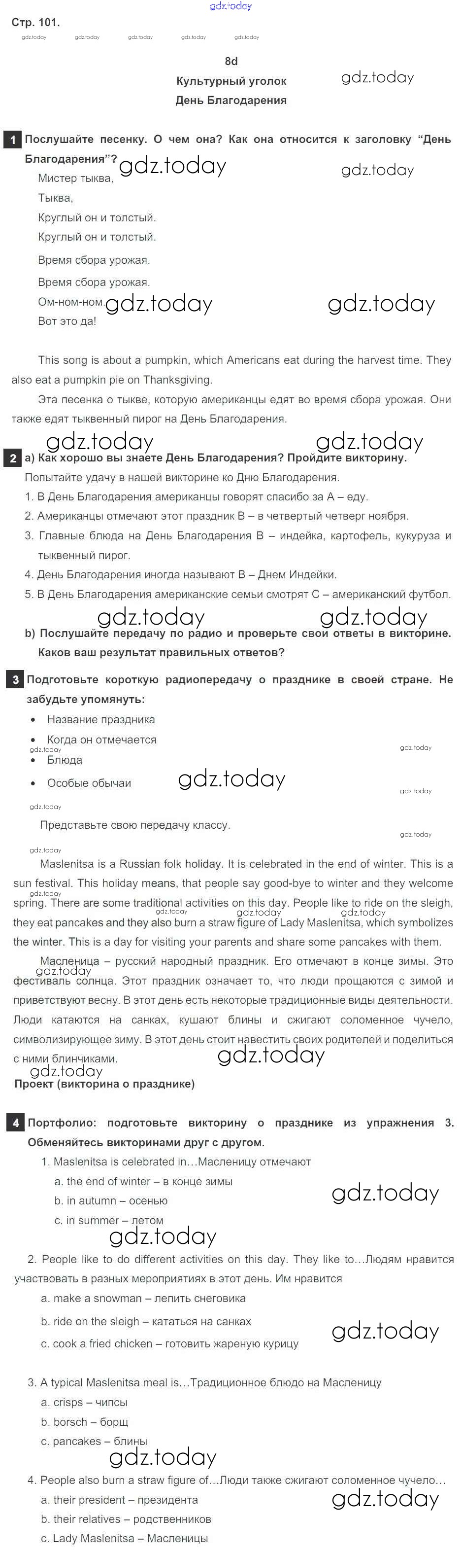 Ответы к Решение к Module 8. Special days стр. 101 Учебнику по Английскому языку для 5 класса Ваулина, Дули Просвещение Spotlight 2015